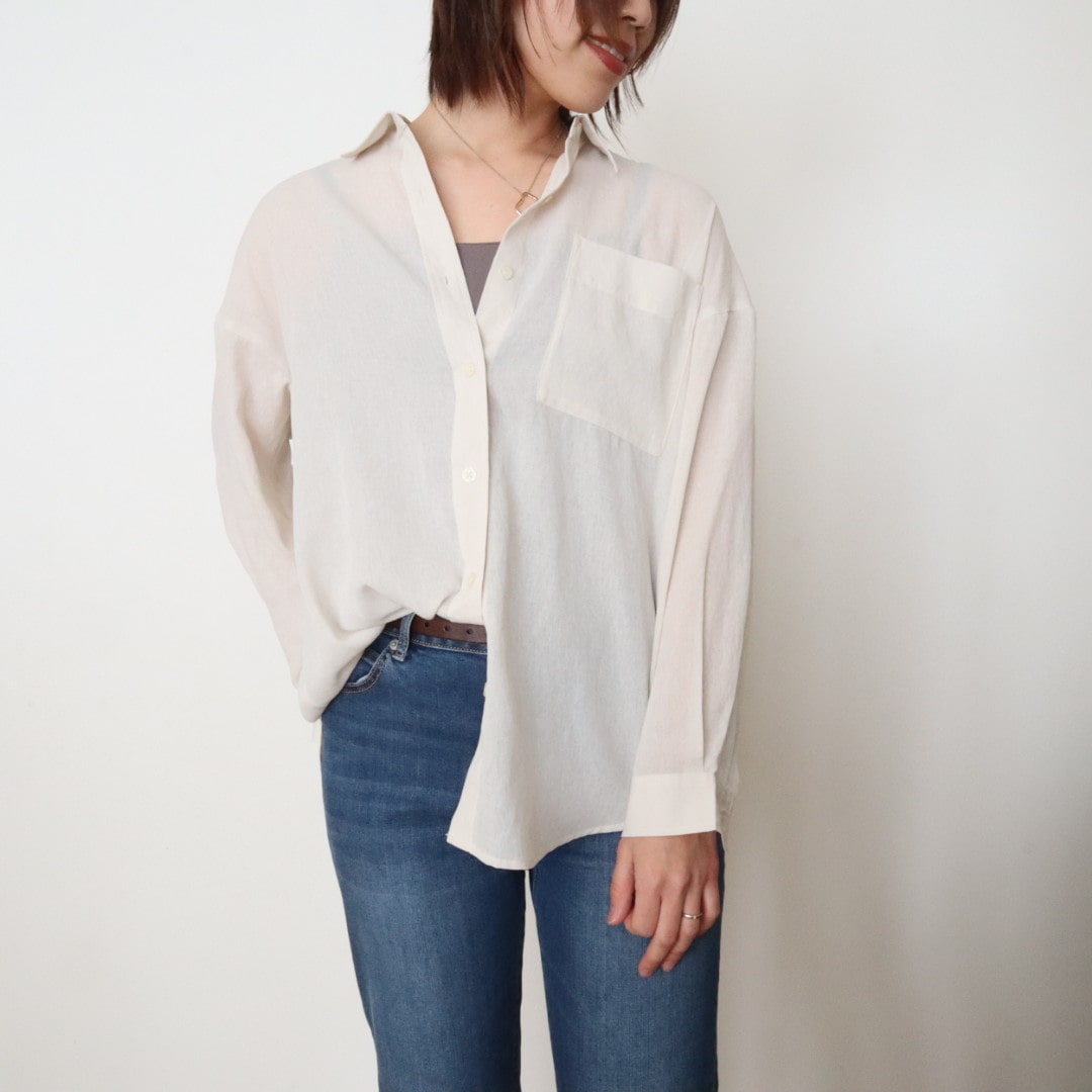 白シャツと合わせてみました。見せるインナーとしても最適なアイテムですよ◎。