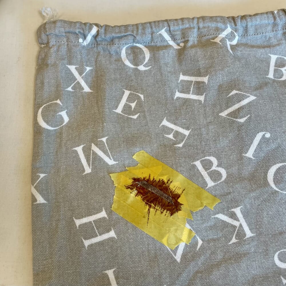 後ろの布に裏写りしないように中に厚紙などを敷いておくと万全です。