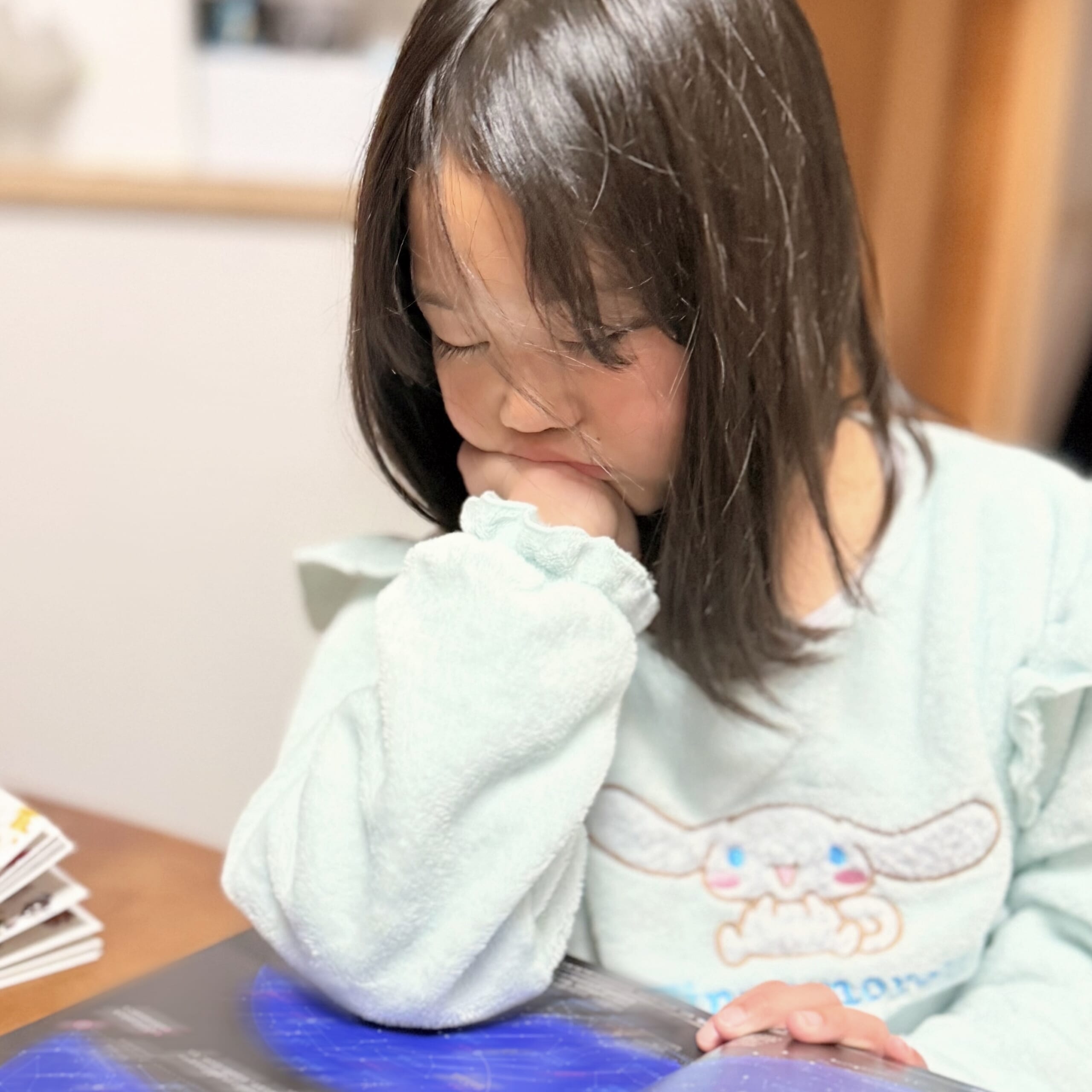 図鑑を見ながら寝てしまった娘。
