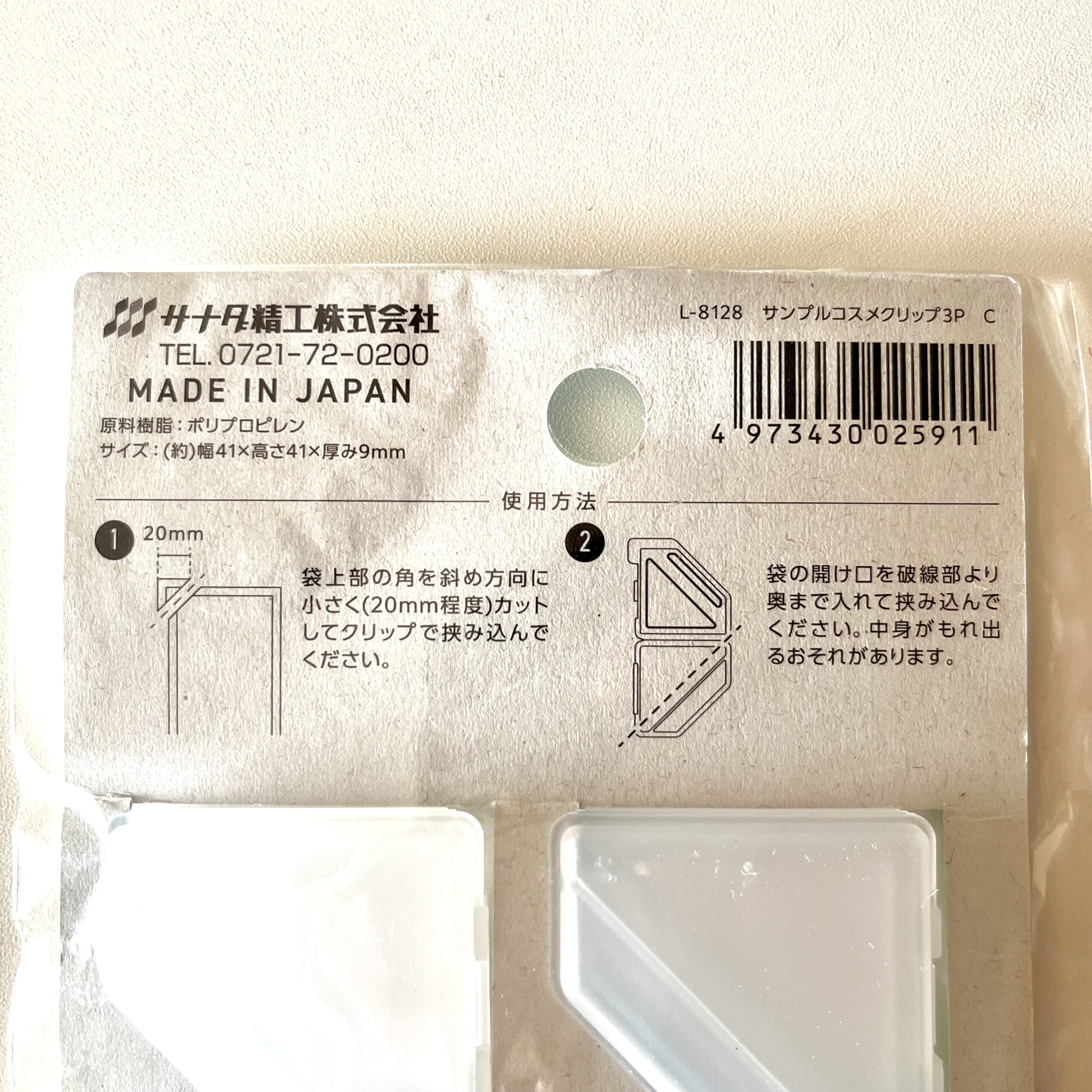 【セリア】サンプルコスメクリップ(3個入り)110円