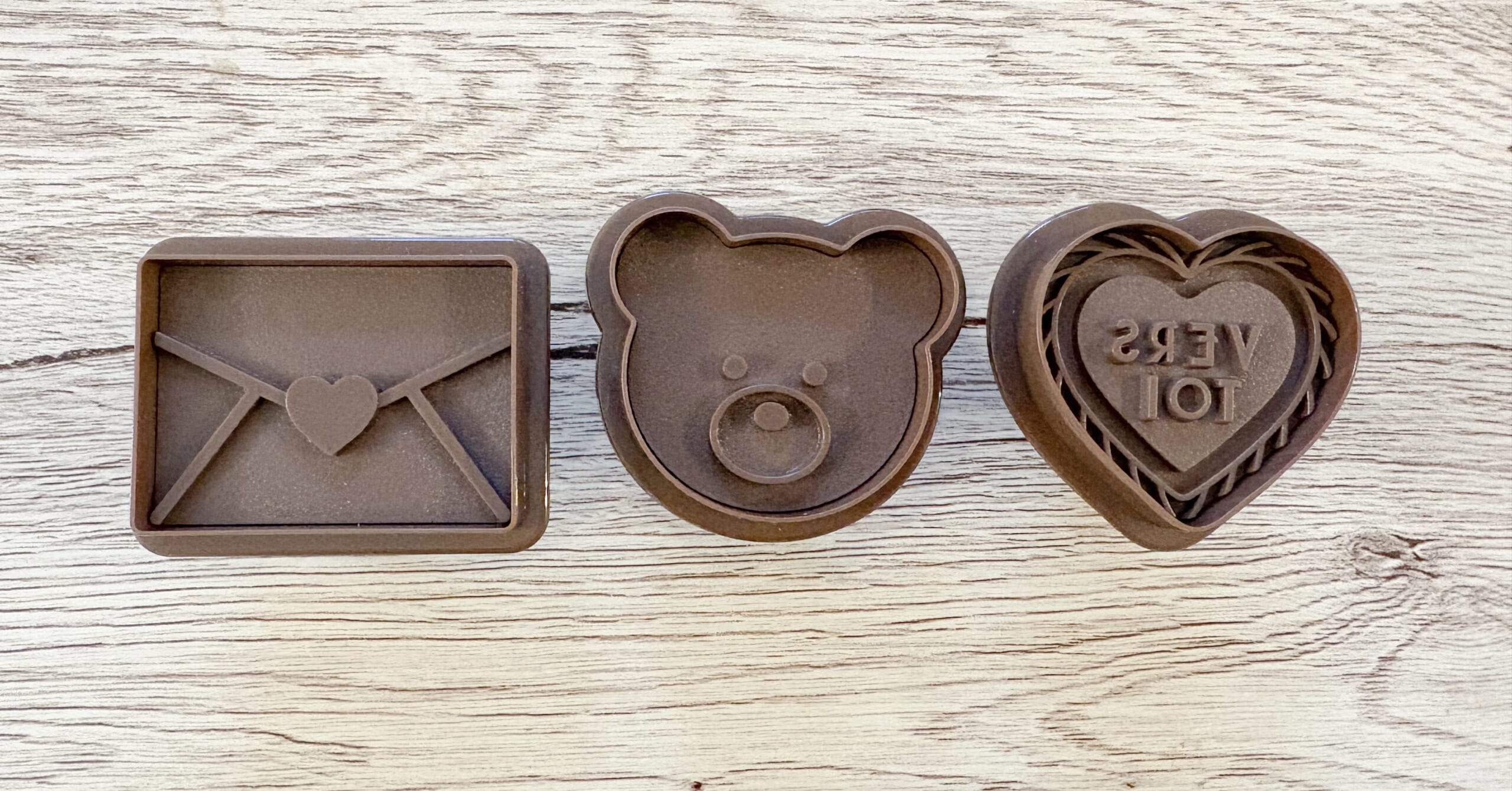 まず、上にプッシュボタンがついてきて、型抜きしやすい!!!生地がつまったりすることなく、サクサクと型抜きできて、とても良い製品だと思いました!3種類の中でも特にラブレター型が可愛いです。