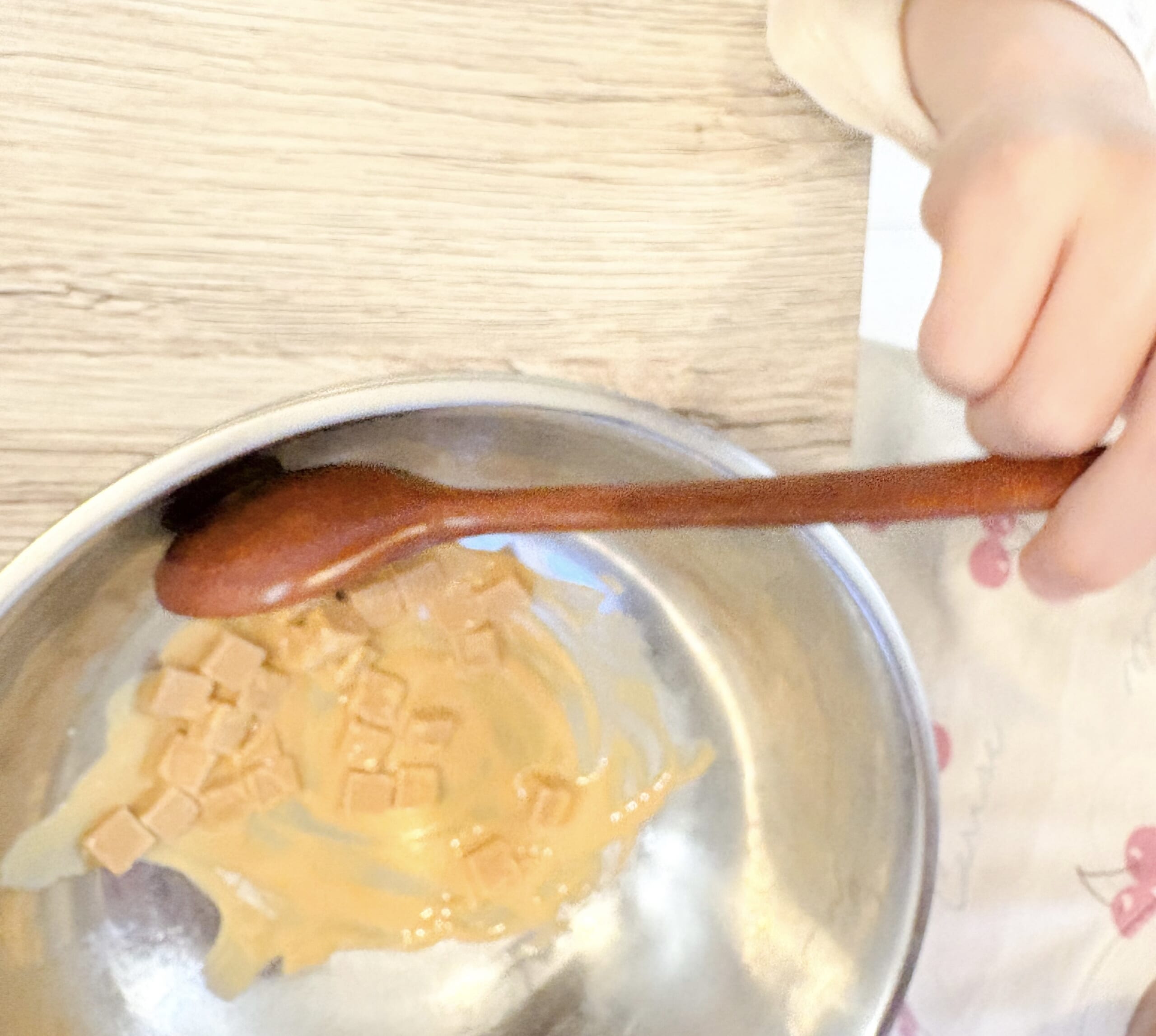 一生懸命頑張ってくれました!チョコレートが飛び散ったり、粉が下に落ちたり・・・