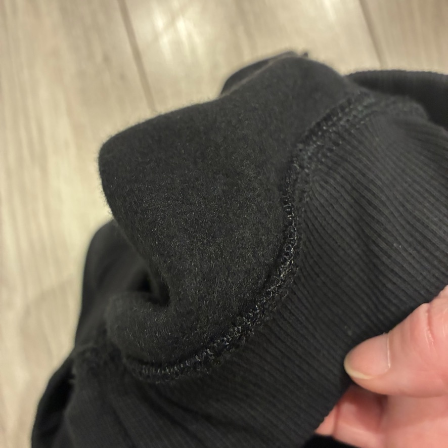 しっかりした肉厚のスウェット素材。裏起毛なので暖かさとたくさん洗ってもヘタらない耐久性を兼ね備えたスウェットシリーズで、サイズアウトしたらリピートするほど気に入ってます。