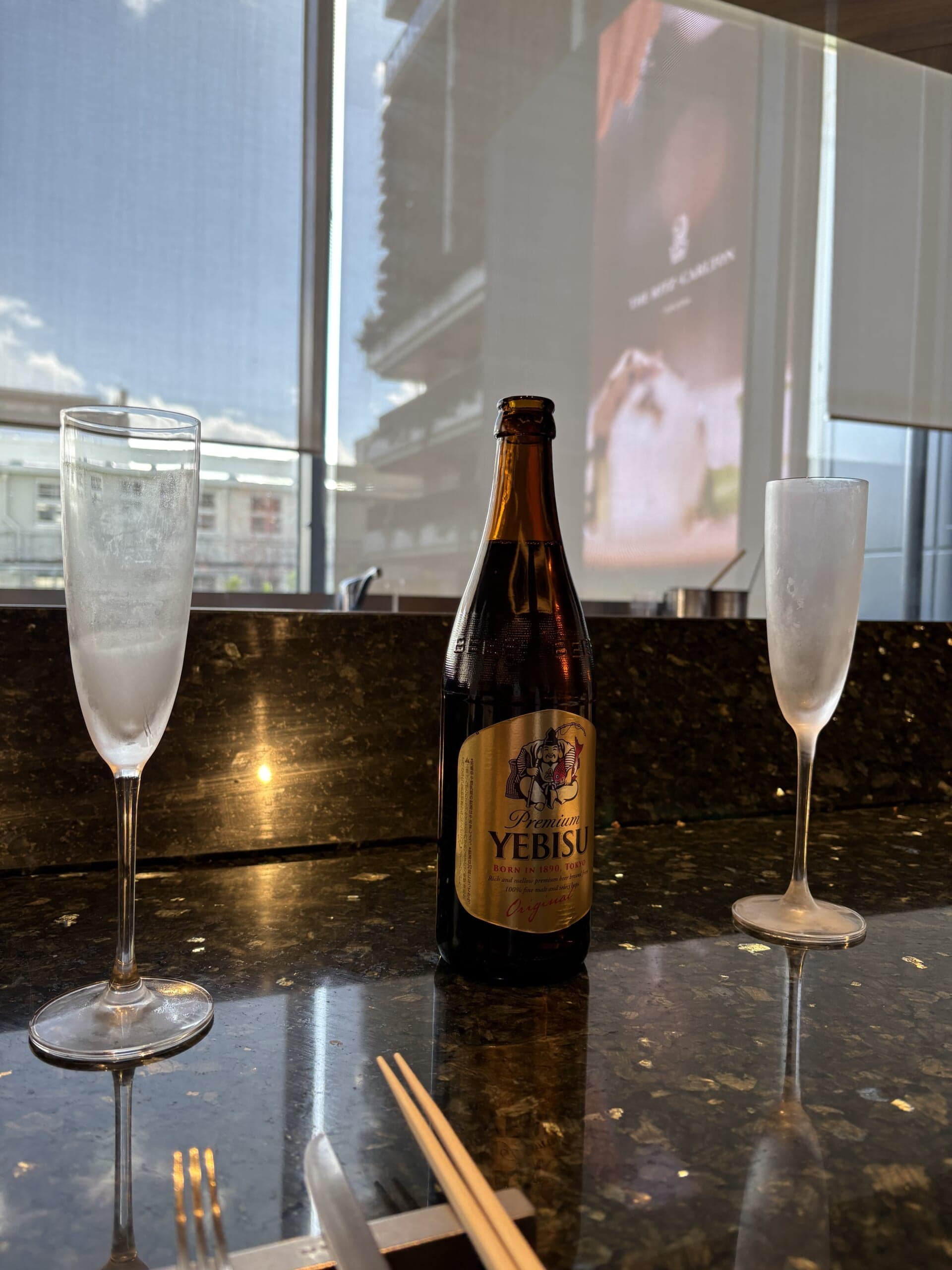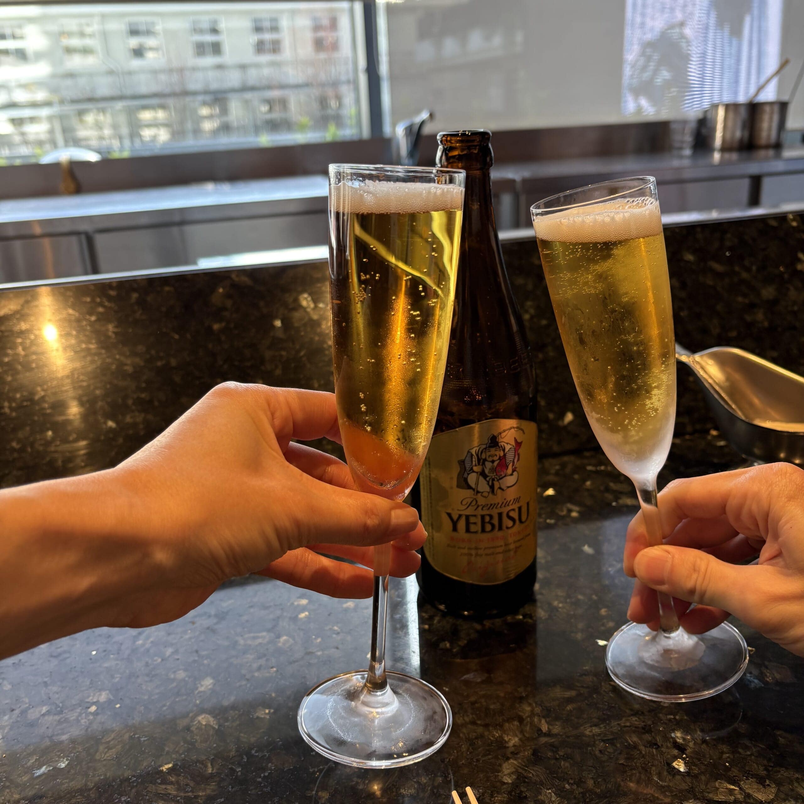 まずは乾杯。久しぶりに夫婦ふたり、昼間に特別な時間のスタートです。