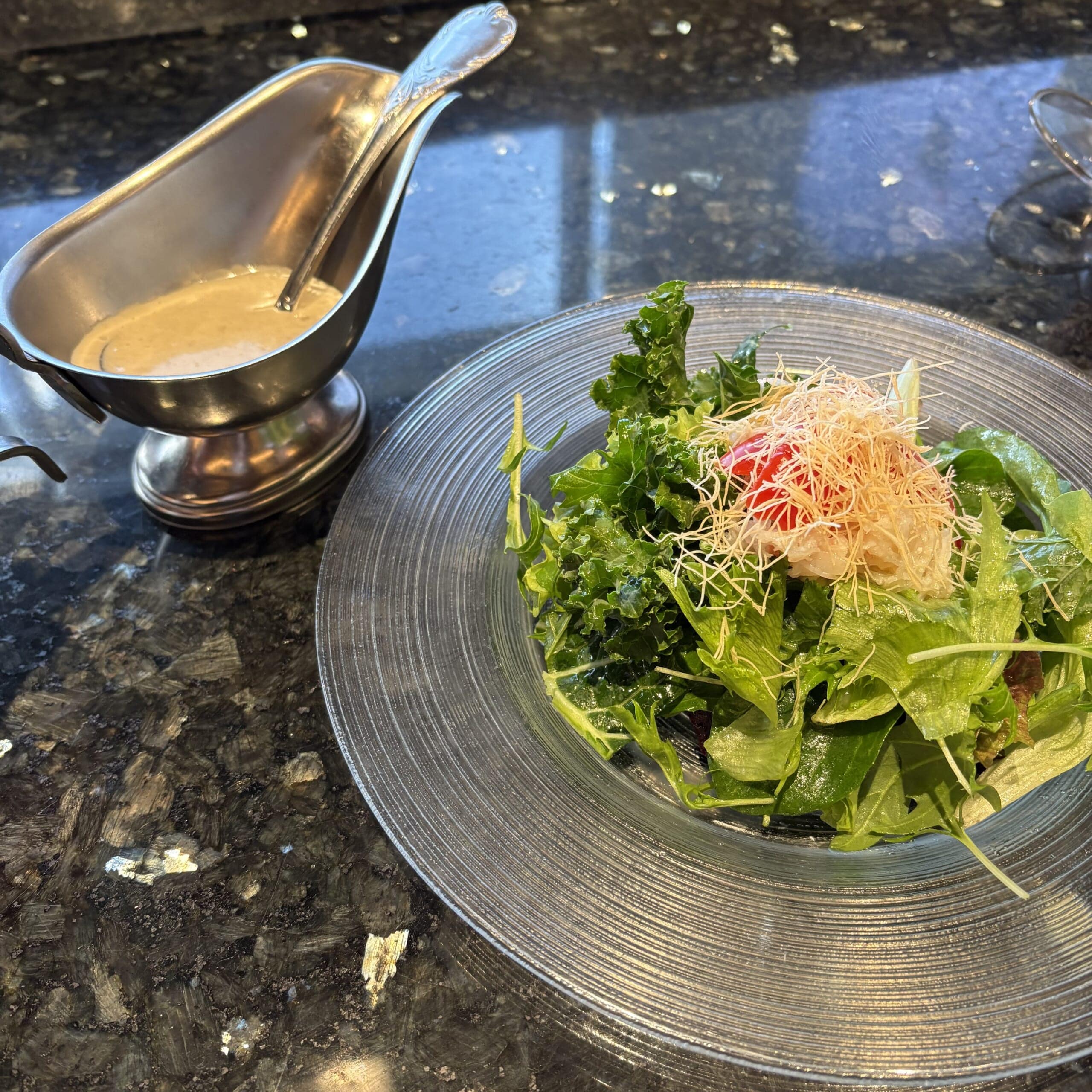 「ドレッシングまでカニ!」な名物サラダからスタート