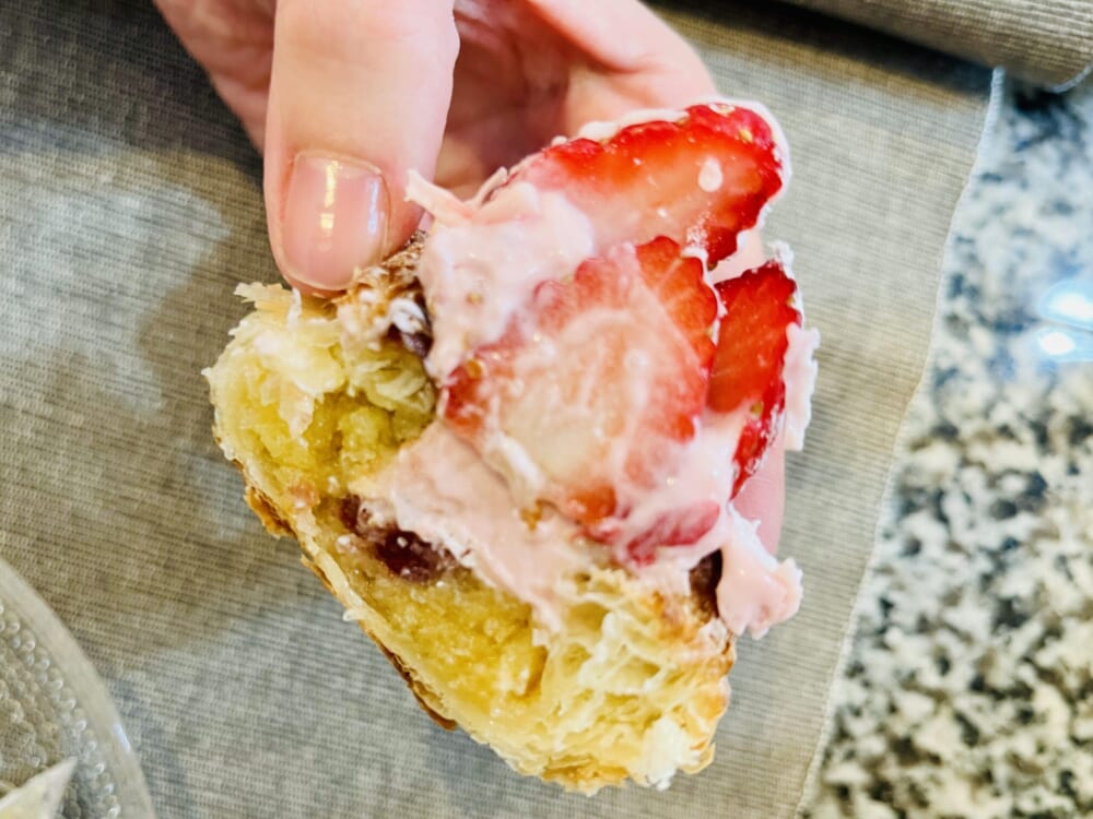 こちらは季節限定の「いちごのデニッシュ」。ケーキのような華やかな見た目に惹かれ、子ども達へのお土産に!と選びました。