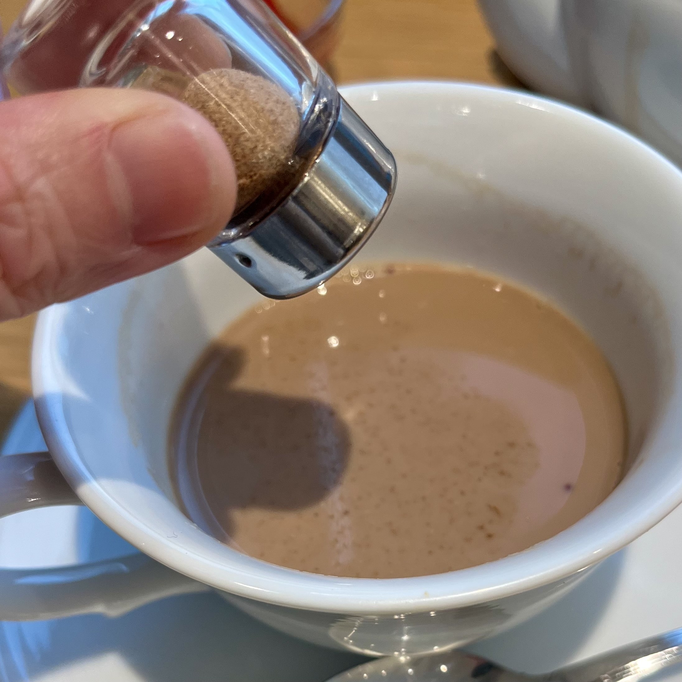 次に「ティースパイス」を振りかけます。シナモンの香りが、あたたかみを感じさせます。