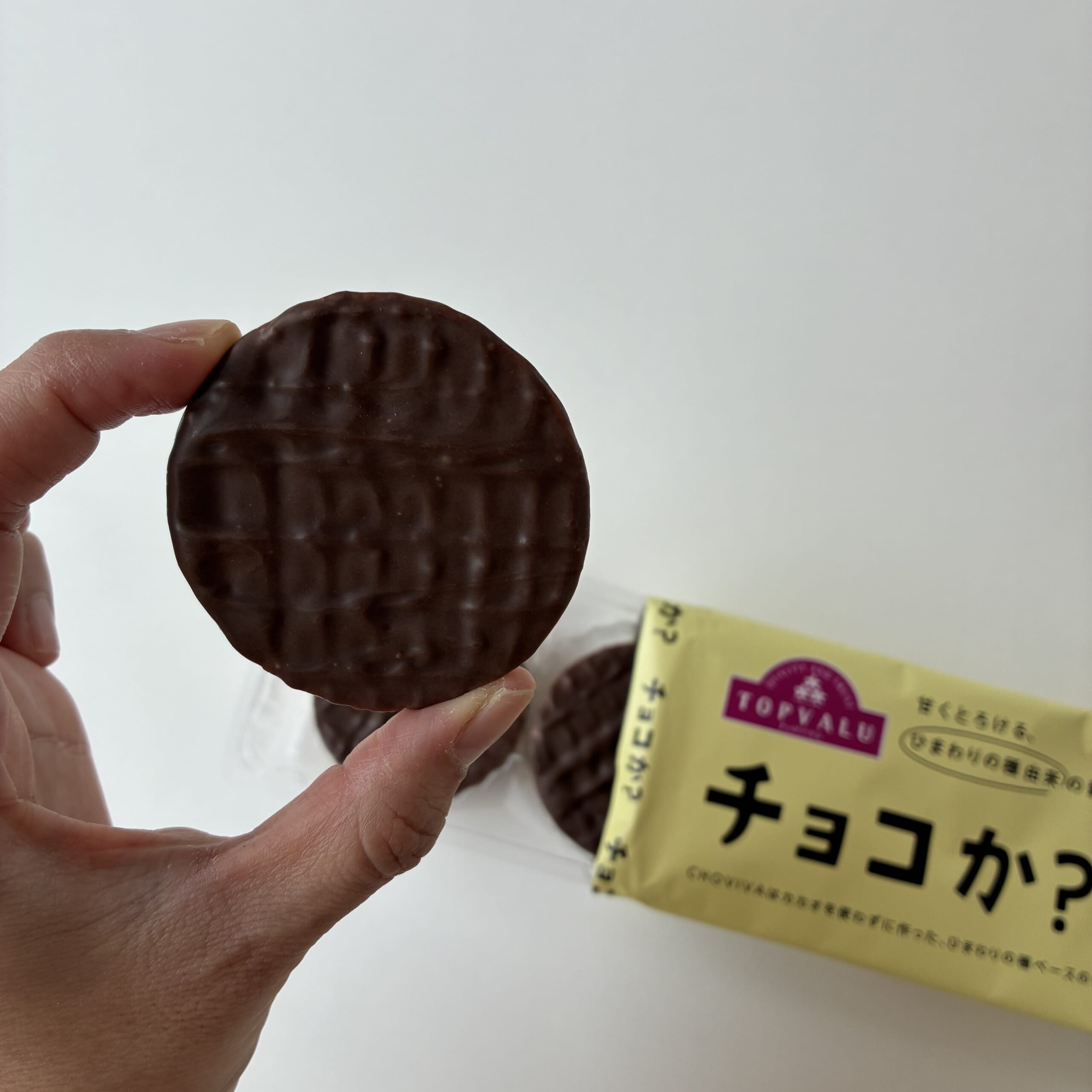 最近やたら気になるイオントップバリュの「チョコか?」。え?チョコじゃないの?どんな味なの?とイオンへ買い求め、私も全粒粉ビスケットにチョコか?を上がけしたタイプのものを購入しました。