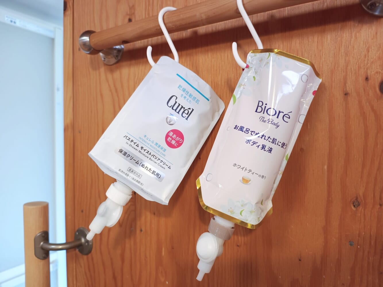 実はつい最近までキュレルの「モイストバリアクリーム」(同じくお風呂で濡れた肌に使うもの)を愛用していました。