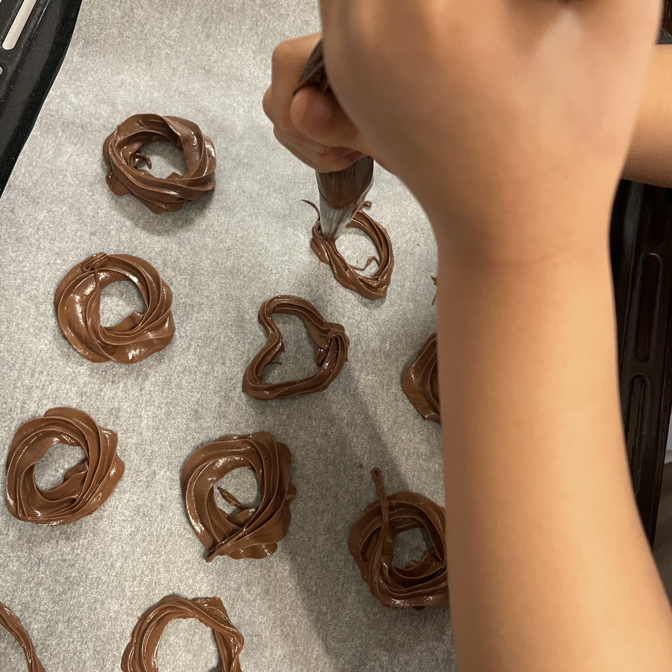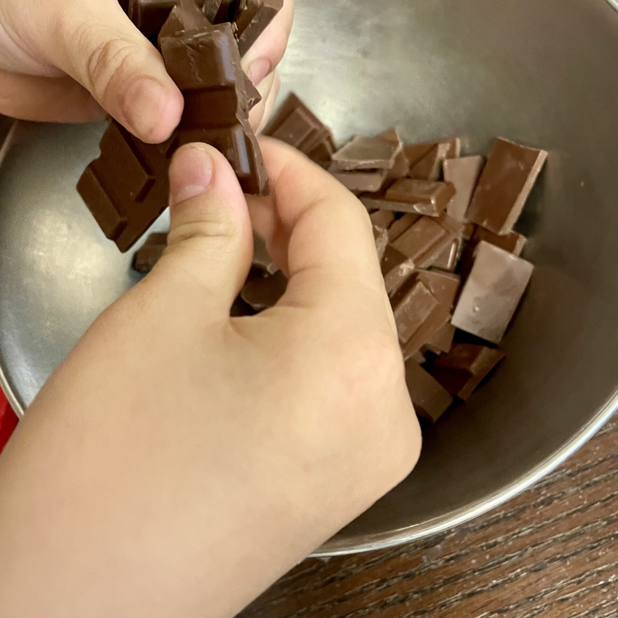 子供達にチョコレートを砕いて貰いました。二人でワイワイと楽しそうでした。