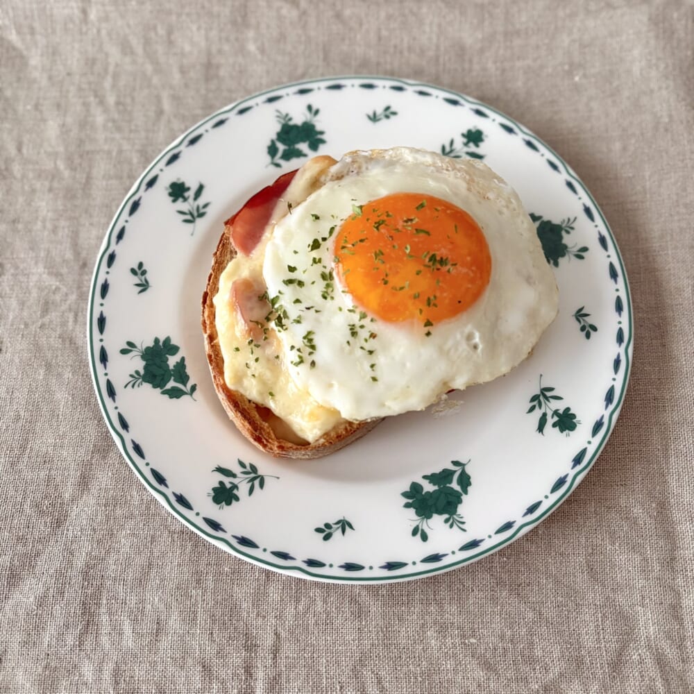 クロックムッシュにしよう、と思っていましたが、目玉焼きのオレンジが映えそうなので、クロックマダムに。