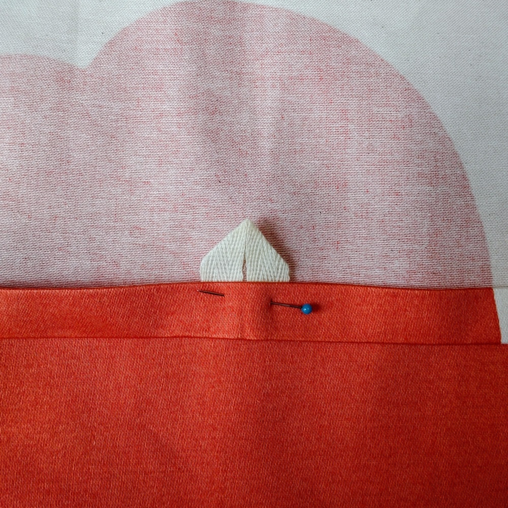 折り紙みたいにアイロンで形付けまして。角を縫う小さな工夫です。