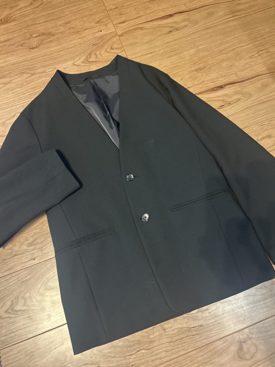 ジャケットはPLSTのもの。ノーカラーなので首回りがすっきりしています