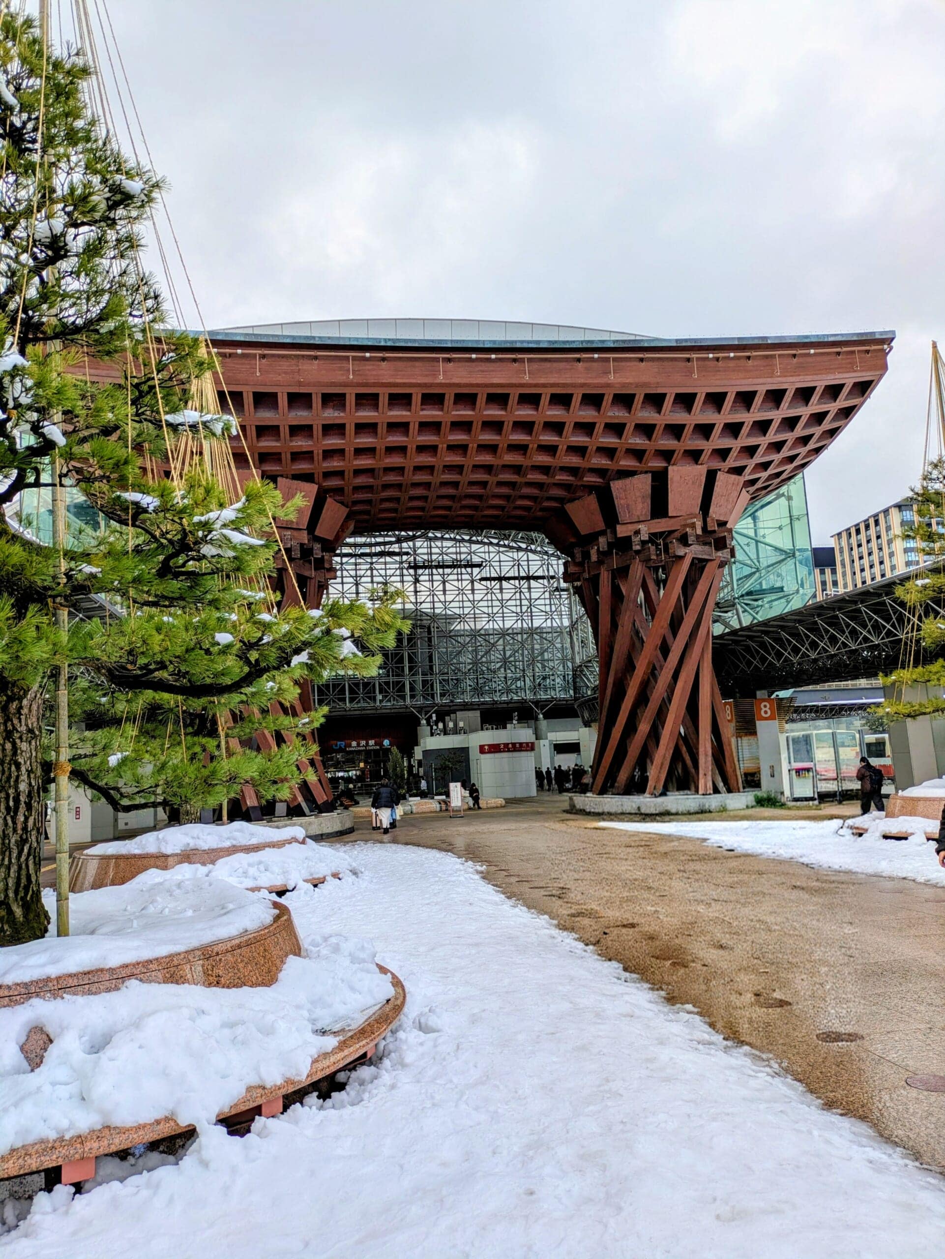 今しか見られない、雪の金沢駅、雪吊りの樹木、オススメですよ😊