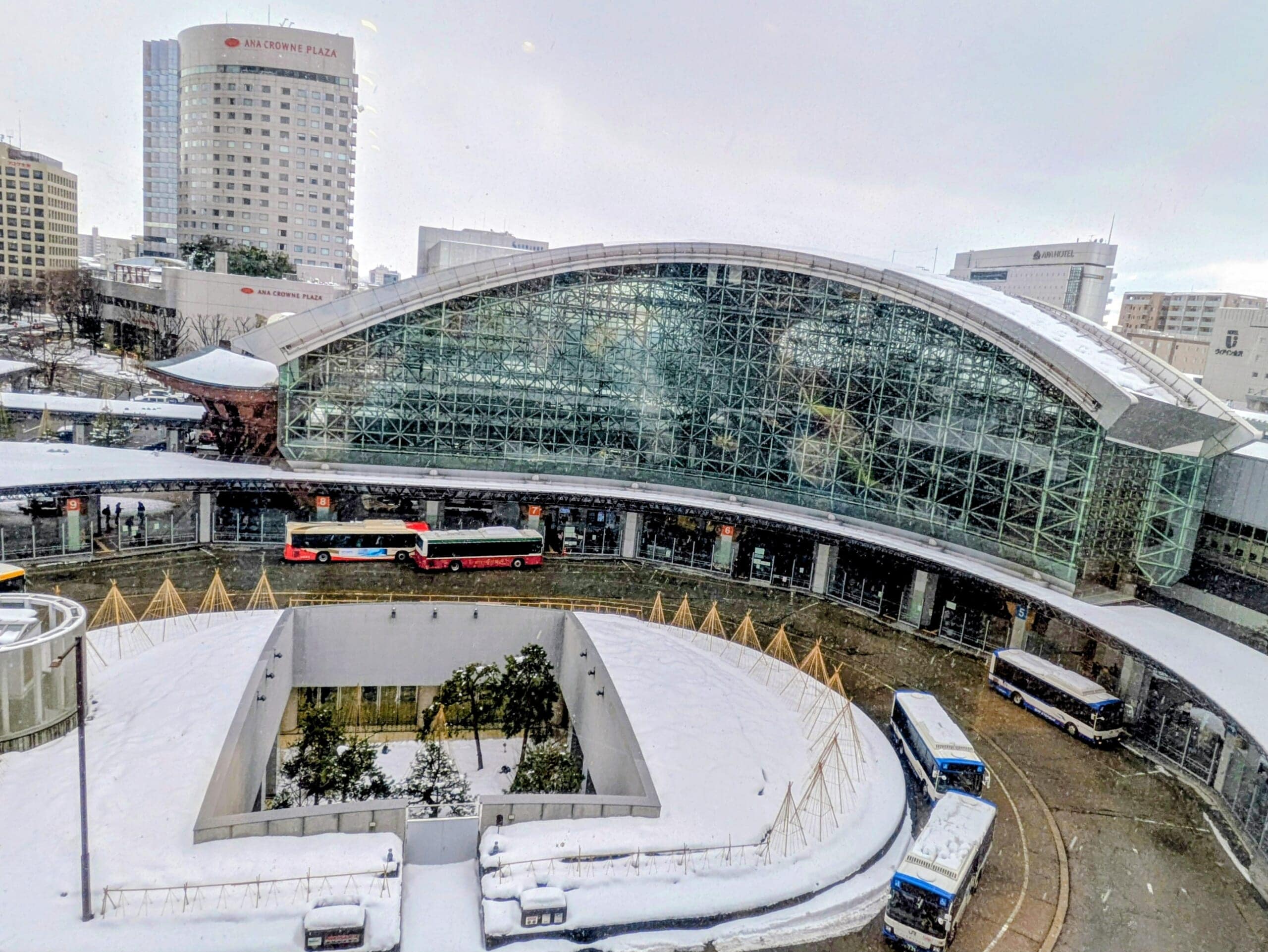 一旦降雪は落ち着きましたが、金沢駅にもたくさん雪が積もっていました