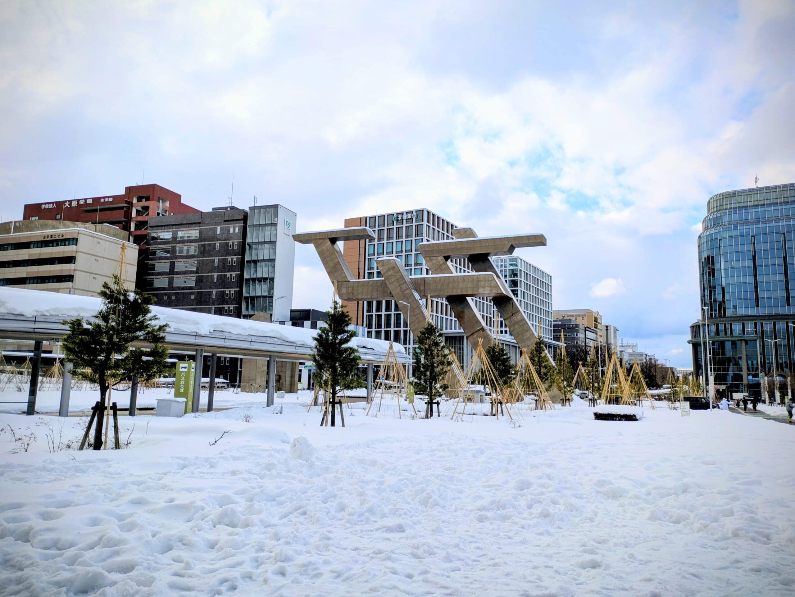 金沢駅は東口が鼓門で有名ですが、西口にもオブジェや郵太郎、HYATTホテルなどがあります