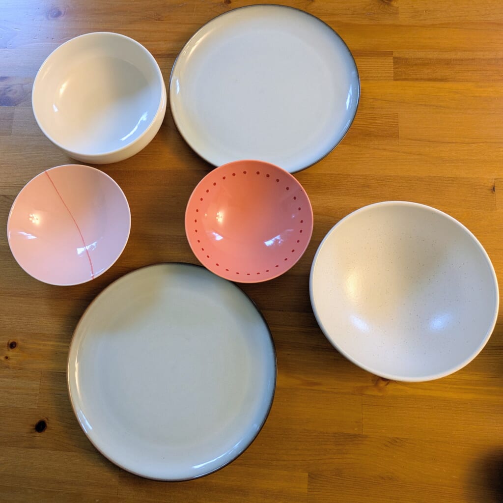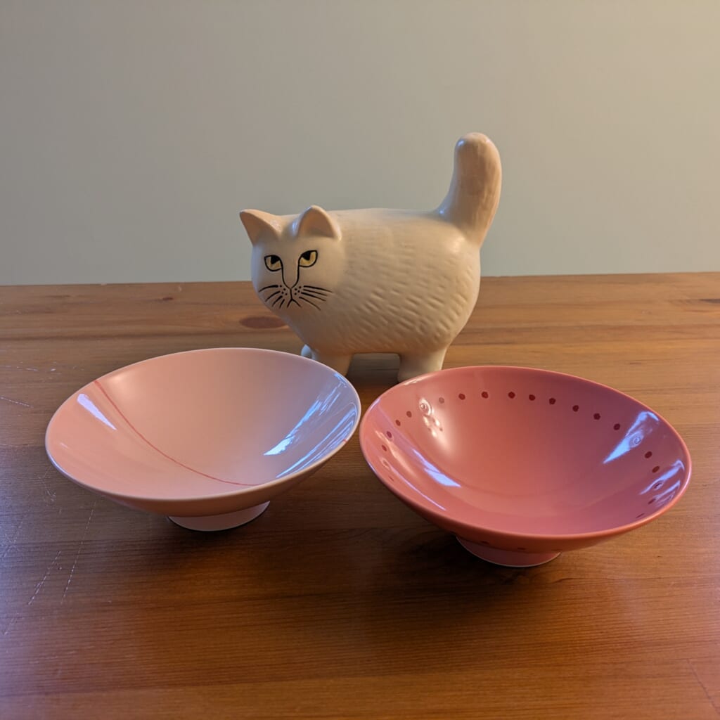 白山陶器の平茶碗は、色やデザインもバラエティ豊かなので、お気に入りを選べるのも楽しいところ。わたしはピンクが好きなのでこちらの二皿をチョイス。