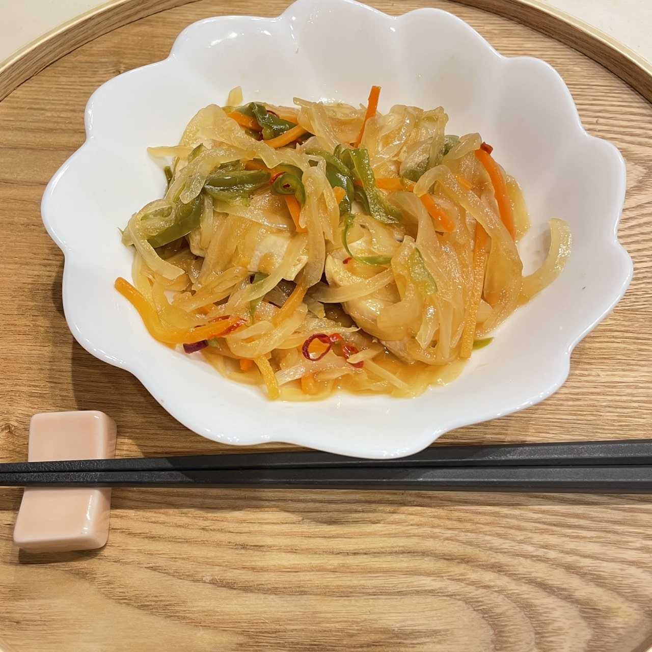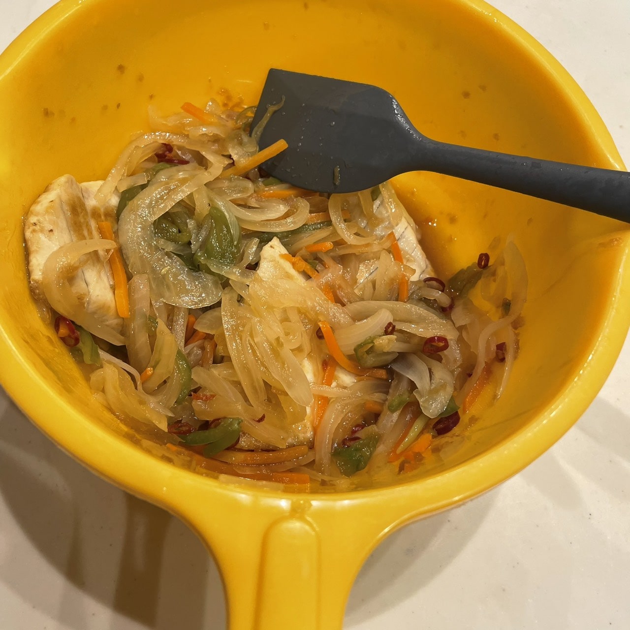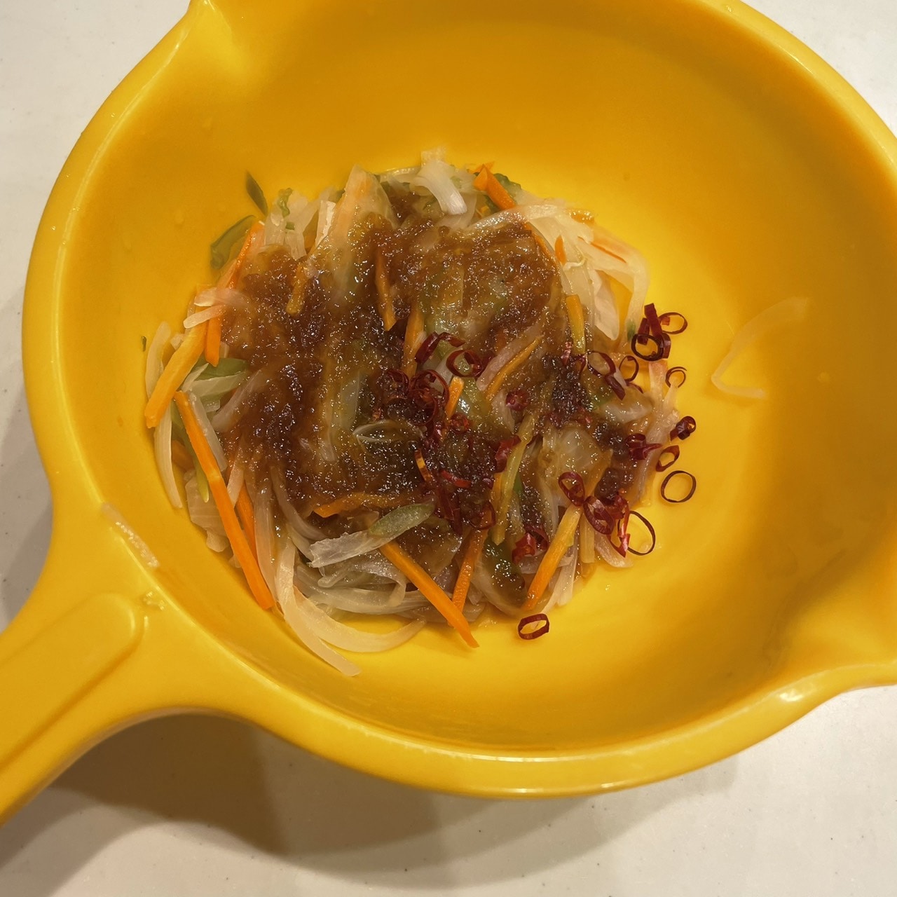 おろしぽん酢、唐辛子を混ぜ混ぜ