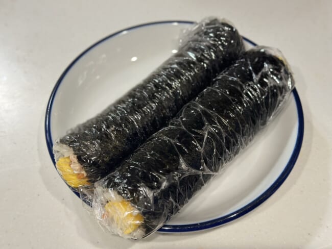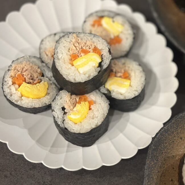 子ども用には、「ツナ卵の太巻き」と「キンパ」を手作り