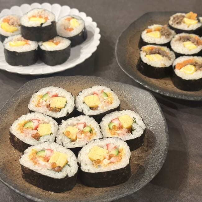恵方巻き・太巻きは「作るものというより買うもの」というイメージが強かったのですが、子供達がパクパクと食べやすそうなので、これからは時々作ってみようと思います。夕飯のレパートリーの一つに仲間入りさせたいです!