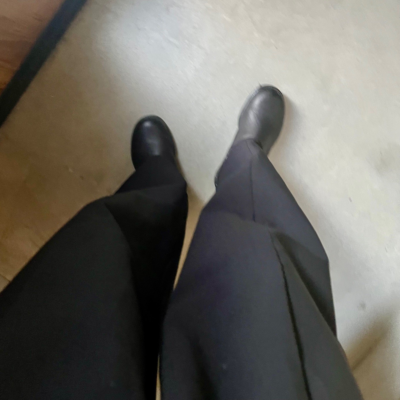 もちろん、下にタイツやレギンスを仕込み、貼るカイロ、さらに靴下2枚履きをしたら、出かける準備OKです。(ブレました・・)特に、ブランドストーンと黒のパンツの相性が良くて気に入ってます。
