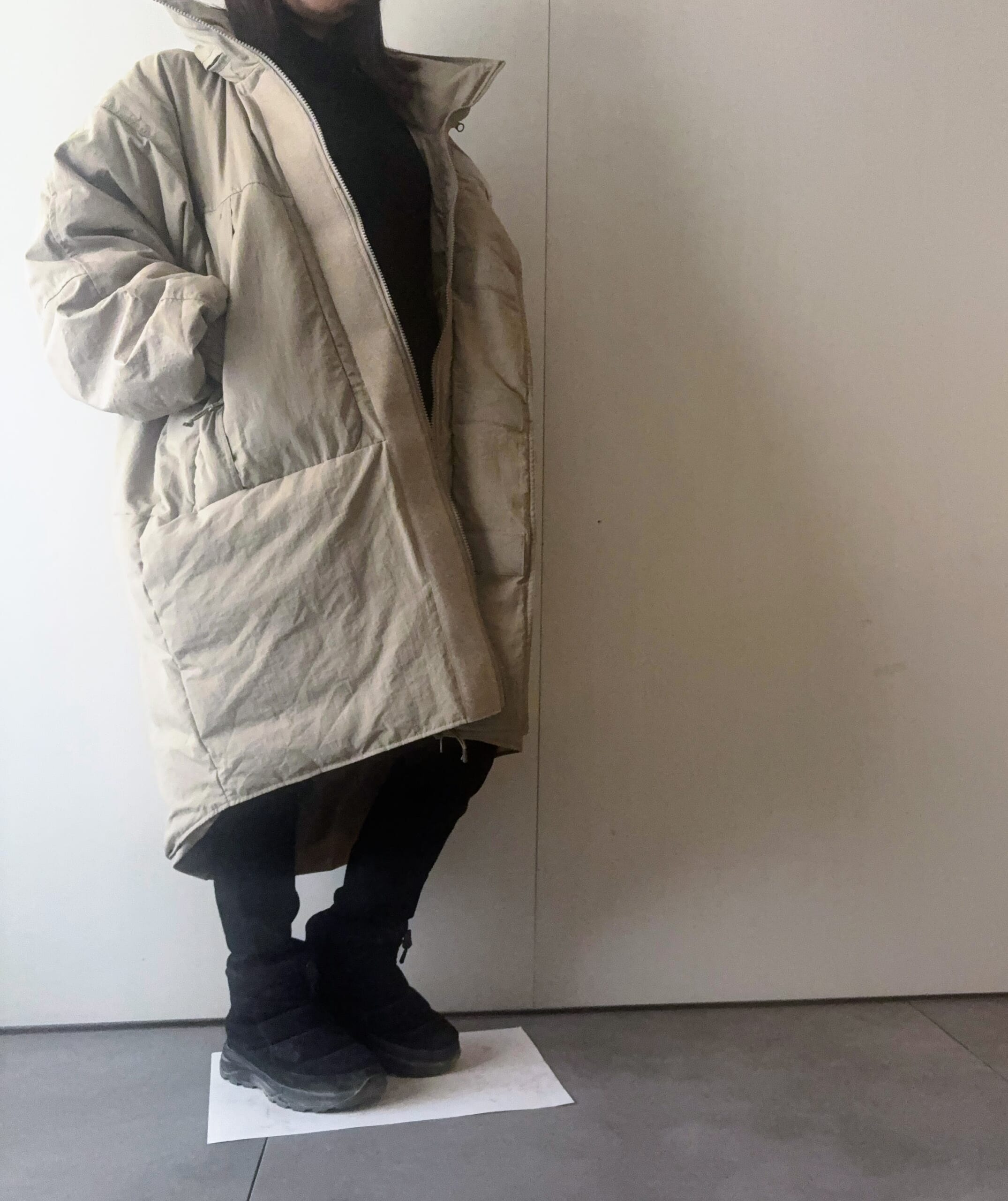 モンスターコートは名の通りモンスターのようなシルエットなので、私のように身長が155cm以下の方は結構悩ましいアイテムだと思います。