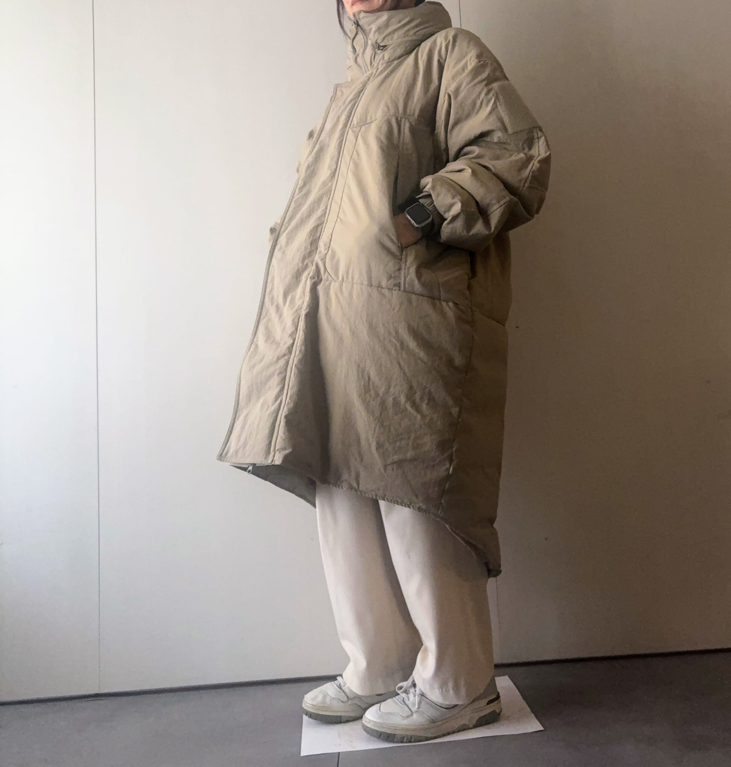 ダウンとも悩んだのですが、ダウンは物価高に連動してものすごく高いのと、ロングダウンはあまり好みのものがなくて。(以前はカナダグースを愛用していて買い替えようと思ったら、なんど2倍の値段になっておりました・・・)モンスターコートは最近流行していて、インスタなどでおしゃれに着こなしている人も多く、気になっていました。