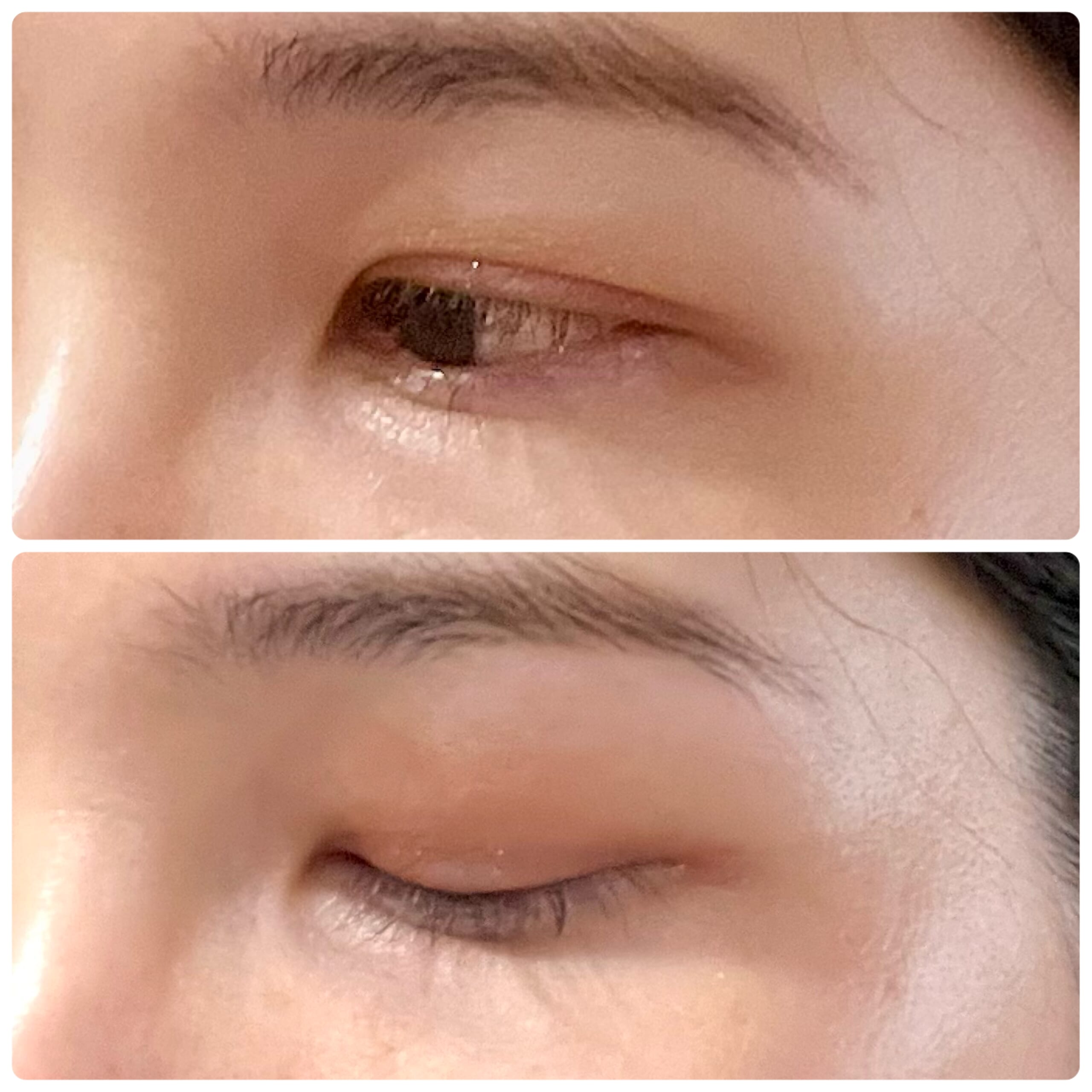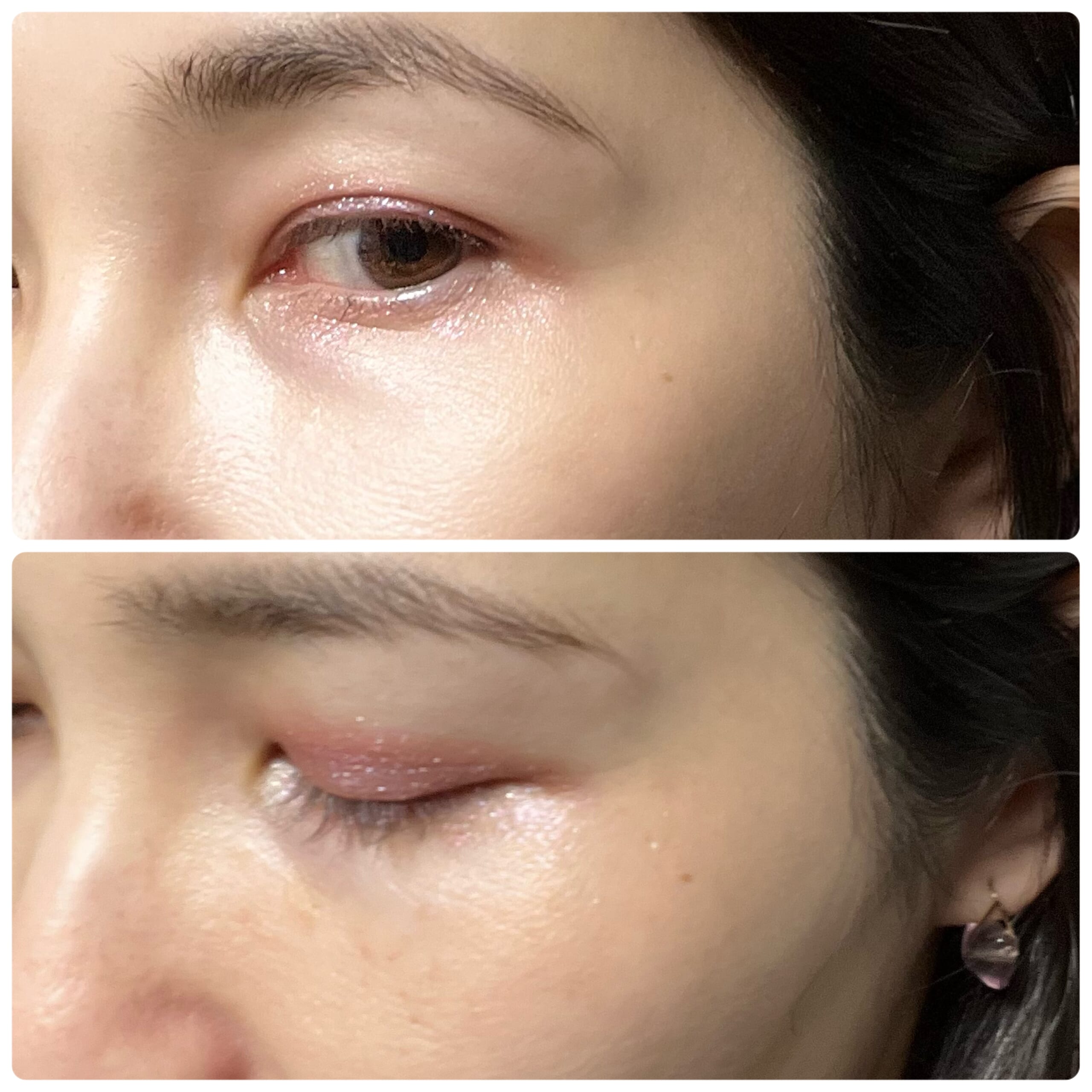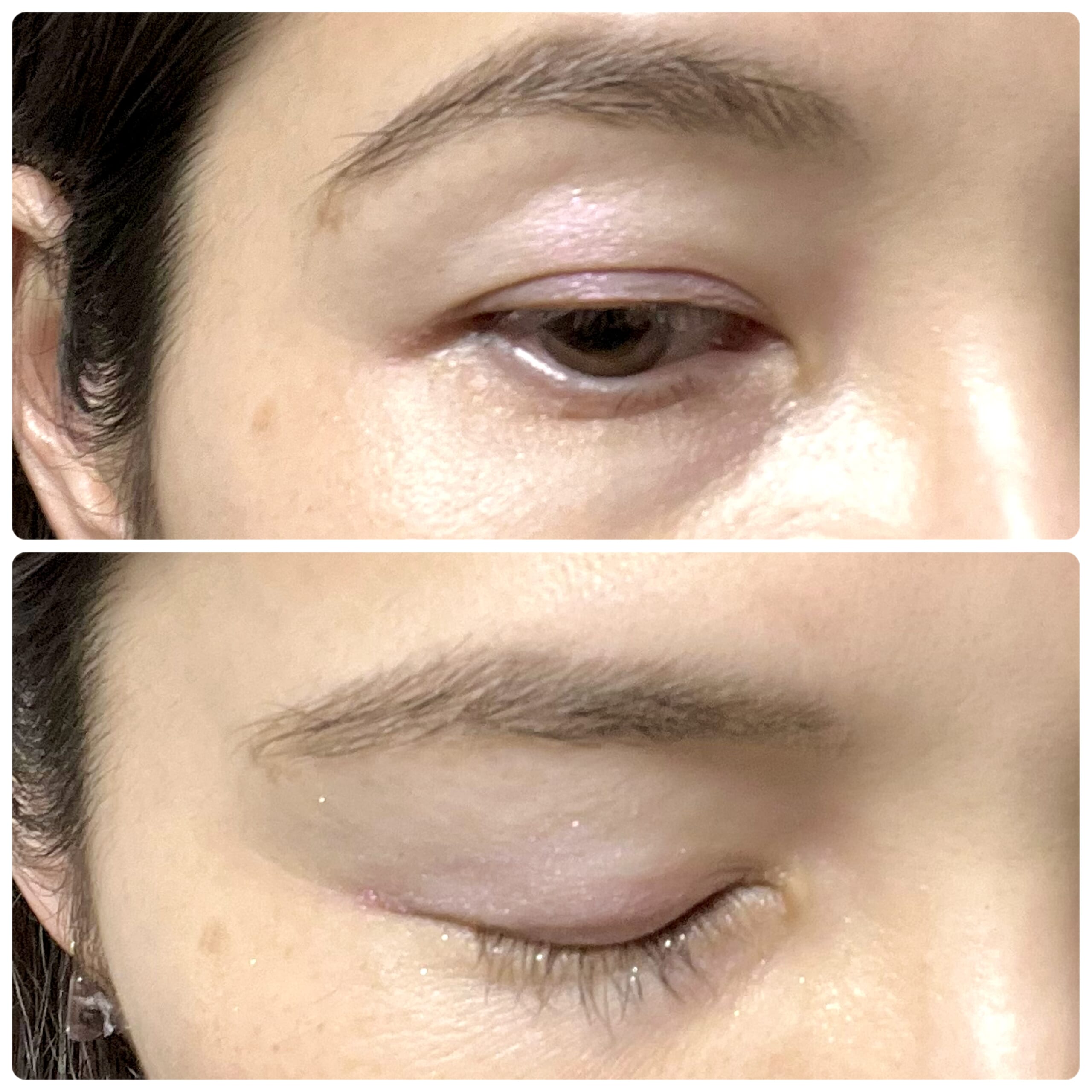 あまりにかわいい色なので、毎日使いたい!と、平日は右下のすももカラーを全体に乗せて、左上の桃カラーを二重幅に入れて使っています。