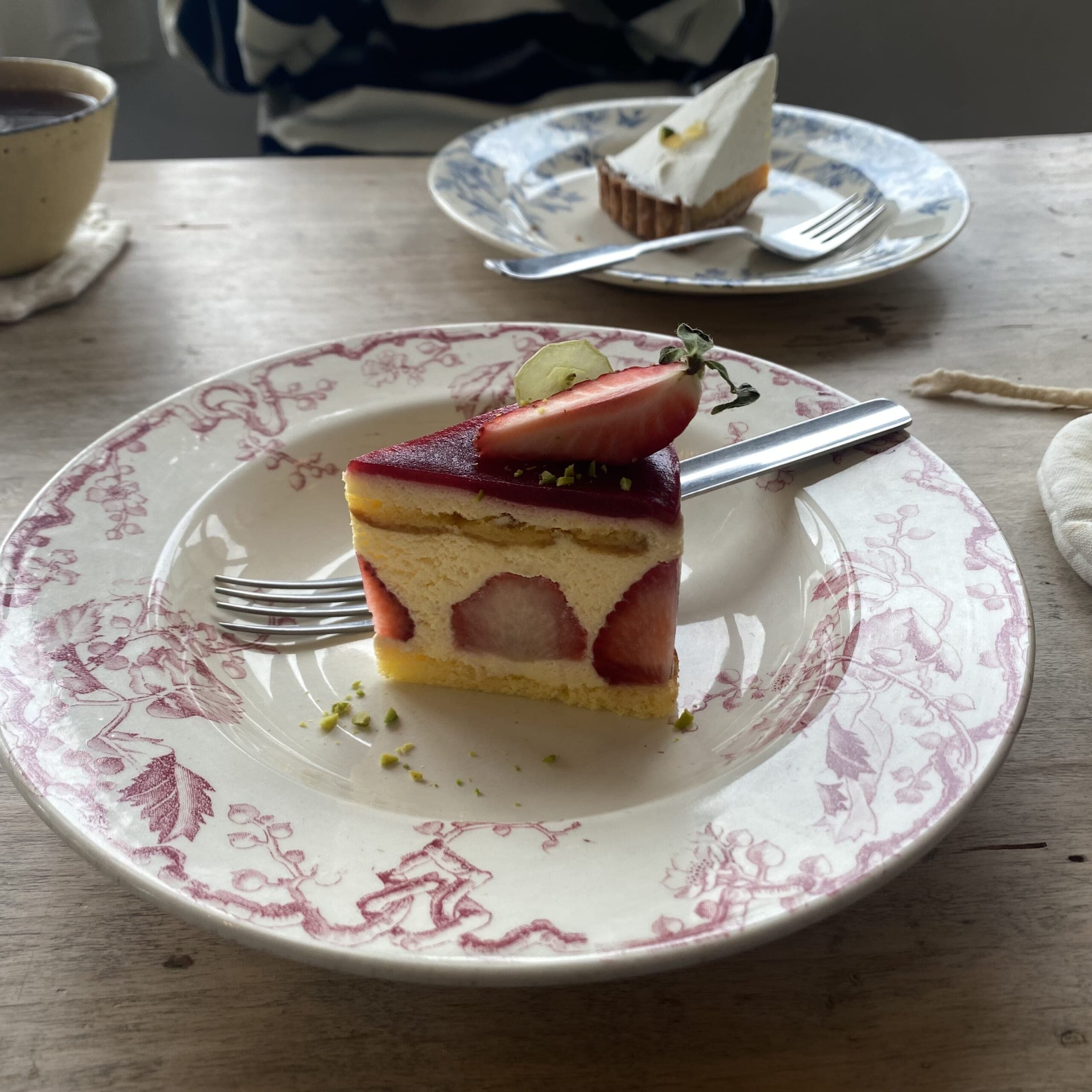 わたしはフレジエ、友人はレモンタルトを頼み、ドリンクは紅茶を選びました。