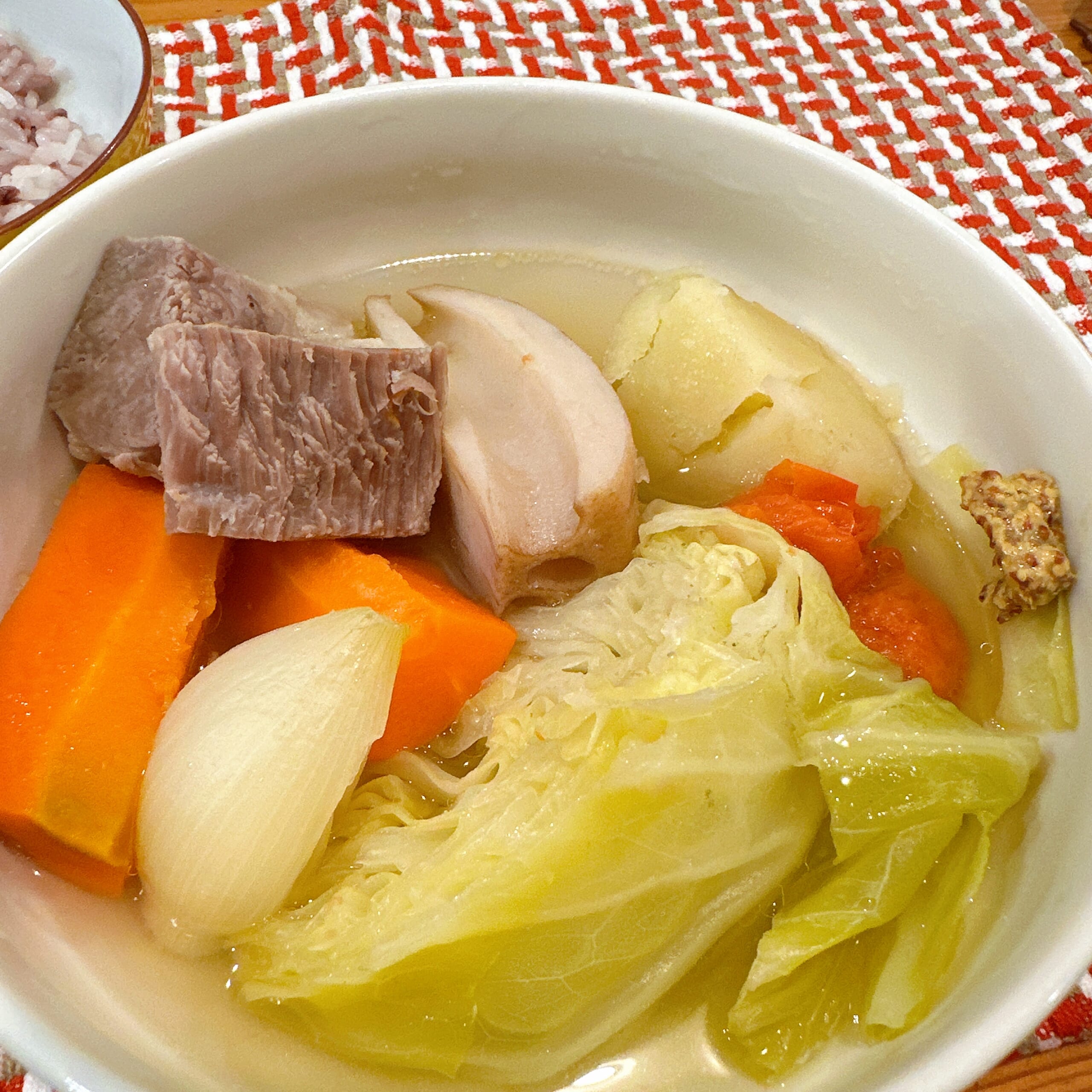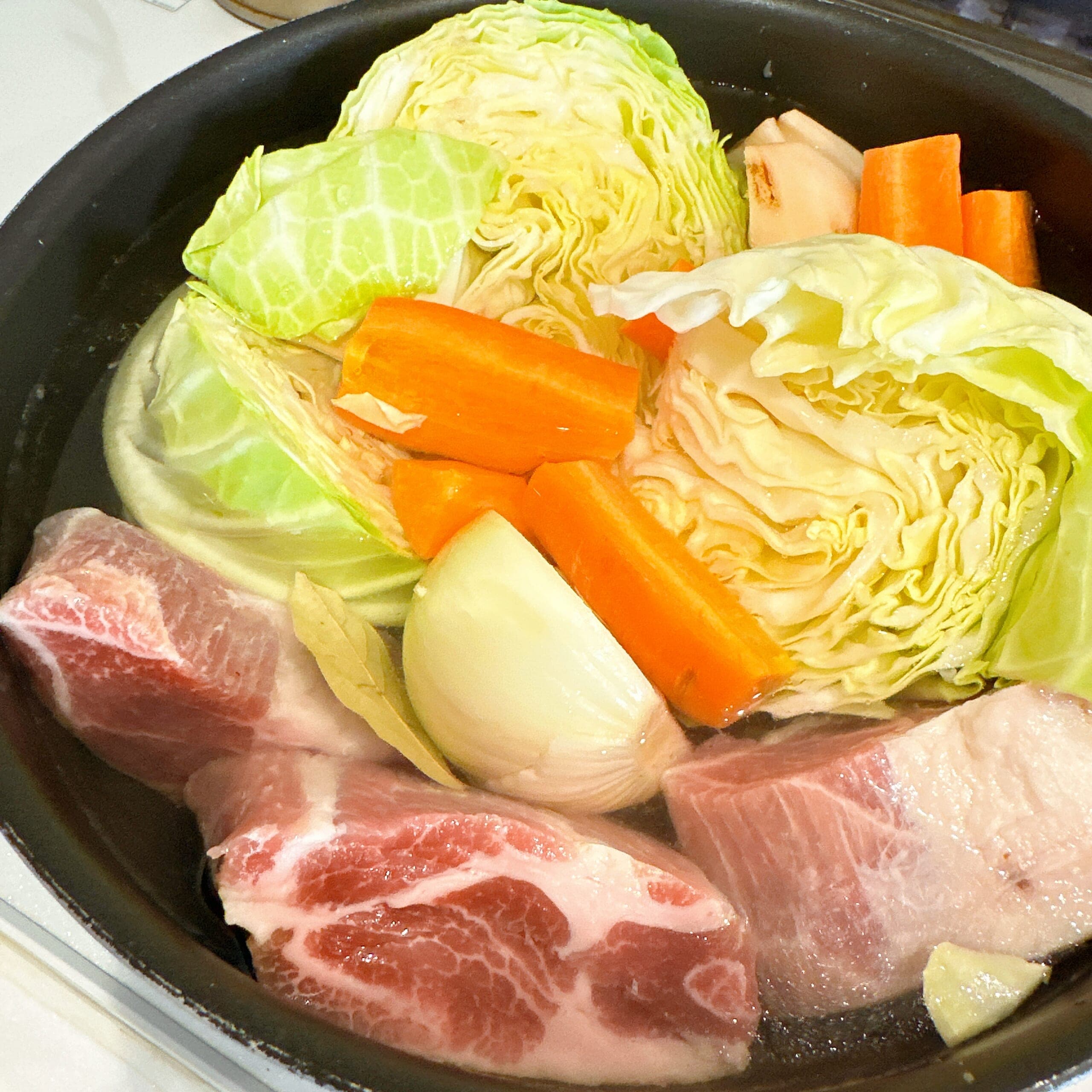 そして、かたまり肉を塩豚にさえしておけば、野菜を切って煮込むだけ。