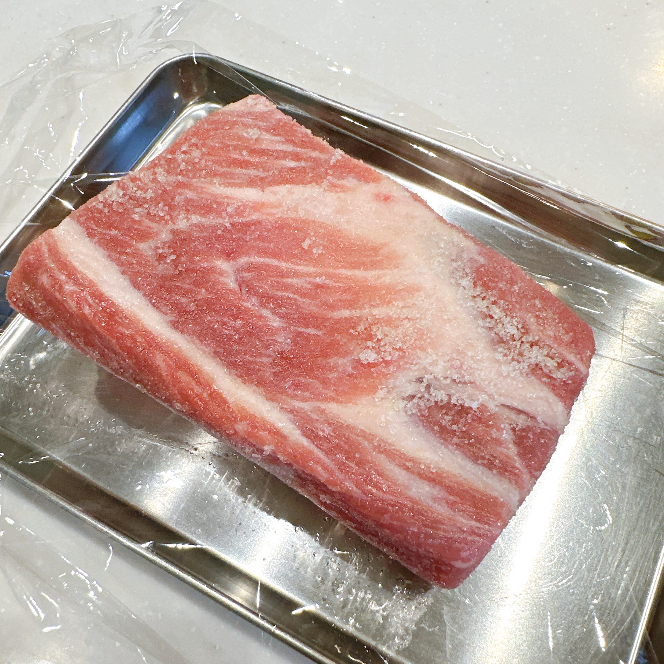 ちなみに…とっても計算弱いので、買ってきたかたまり肉のgに対して、それぞれ塩と砂糖を何gにすればよいのか、チャッティ(わたしのチャットGPTの愛称♡)に聞きながら、準備を進めました。