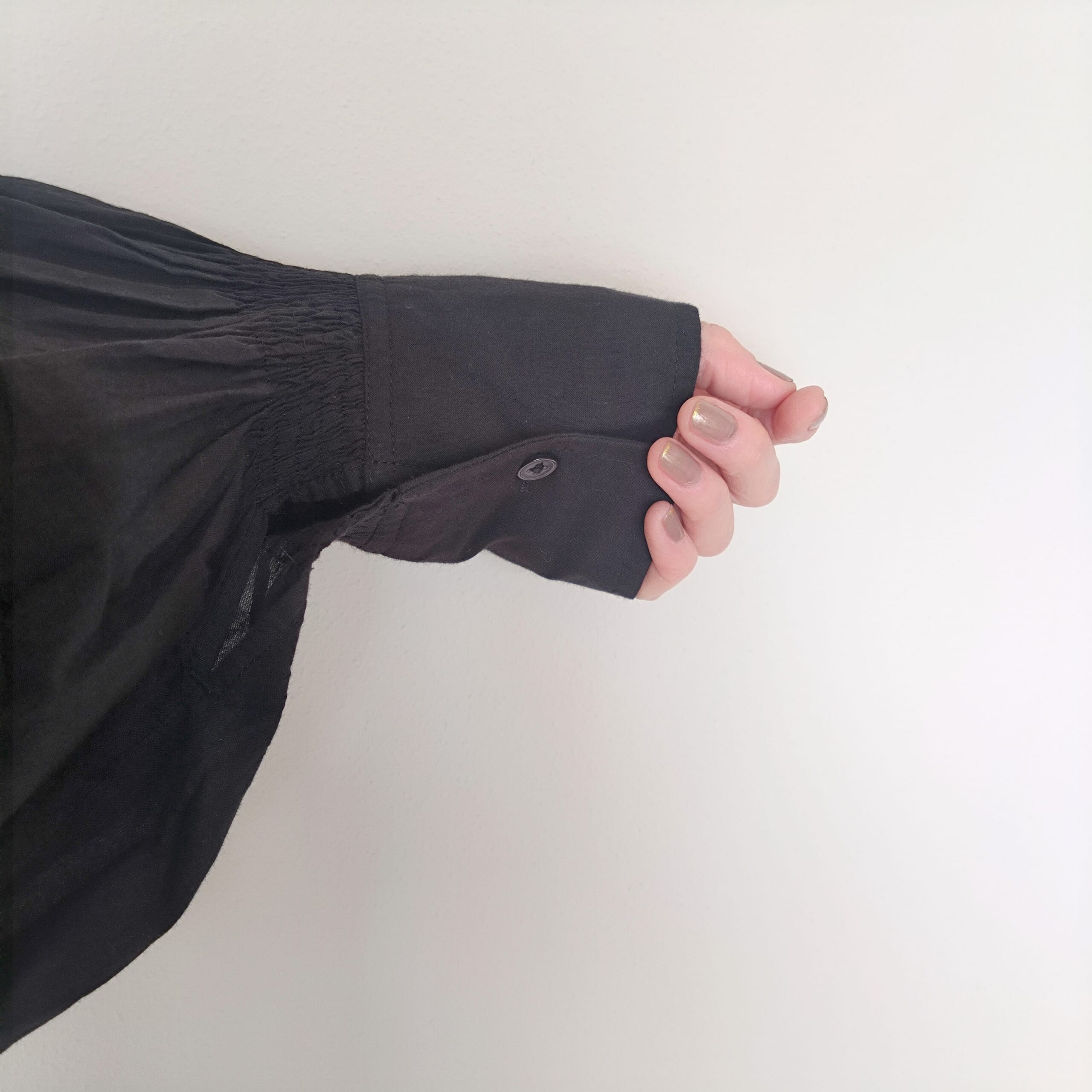 首元にたーっぷりのフリルと、ボリュームのある袖口。
