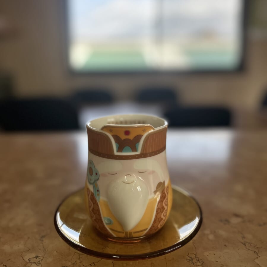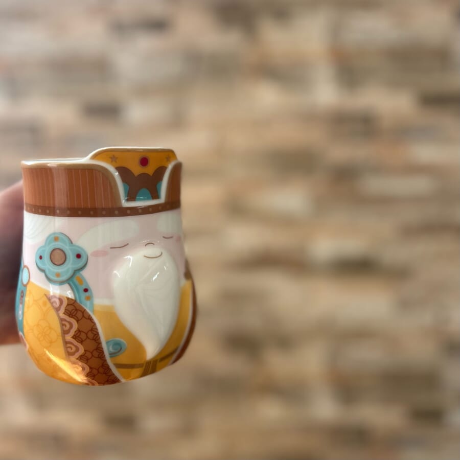 台湾の神様シリーズのマグカップは6種類あるそうですが、このお方は「土地公」という土地の「守り神」!