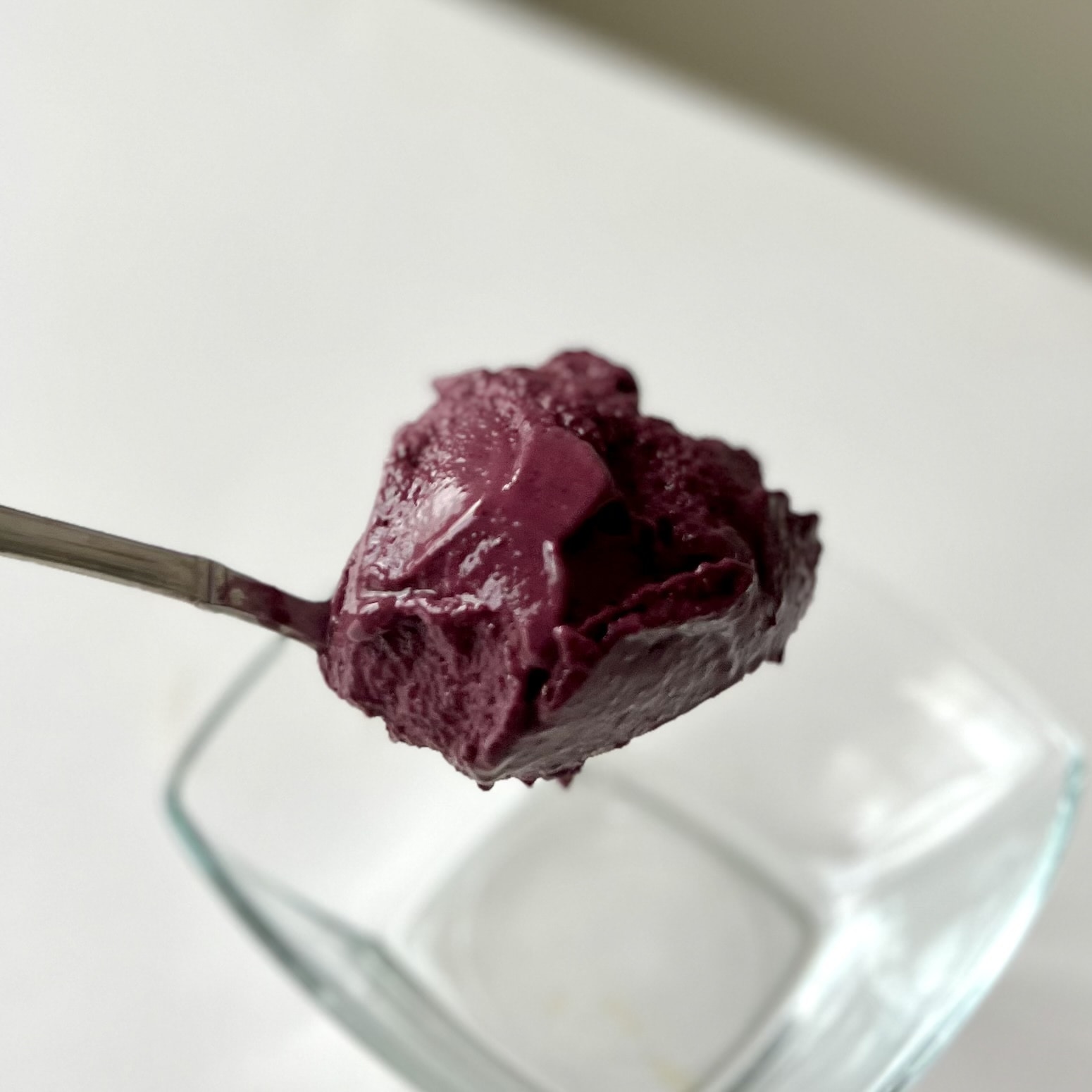 アサイーの冷凍ピューレはそのままではなく、冷凍フルーツと一緒にミキサーにかけて滑らかにします。