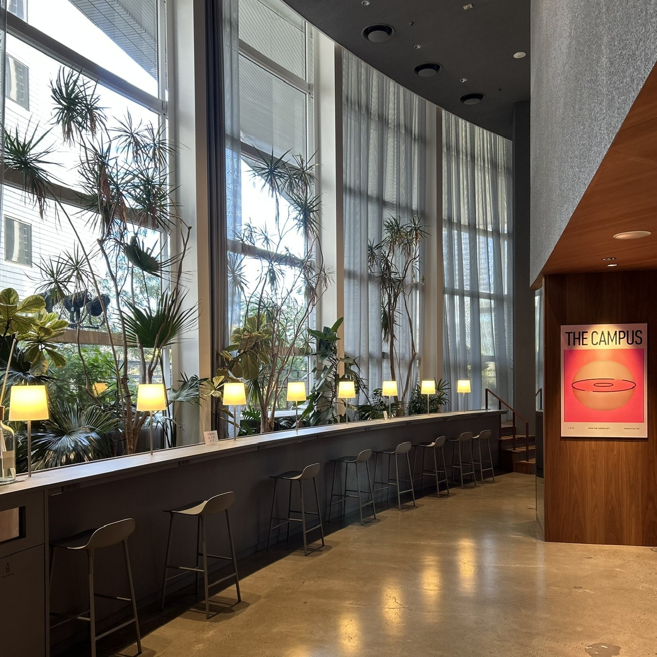 室内はゆったり広く、インテリアやグリーンも洗練されていて、綺麗でオシャレな施設。