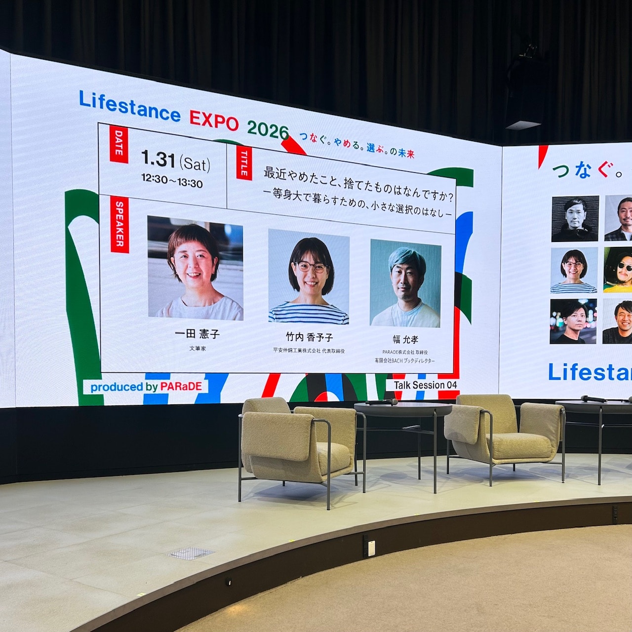 平安伸銅工業株式会社 代表 竹内香予子さん、PARADE株式会社 取締役 幅允孝さんのお三方で、「最近やめたこと、捨てたものはなんですか?」をテーマにトークされるというので、興味津々でした。