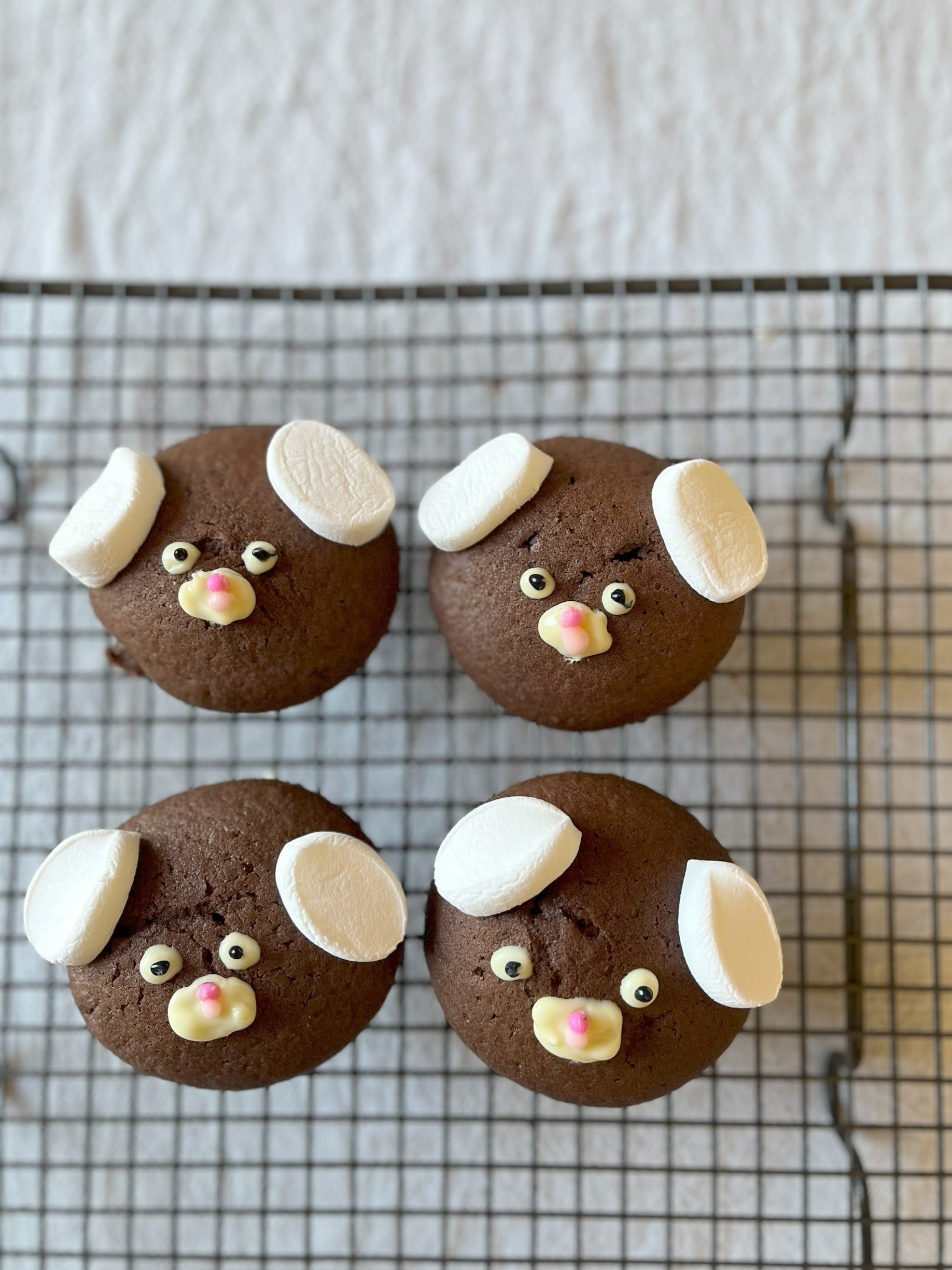 マシュマロ、チョコペンで顔を描いていきます。1番楽しい時間