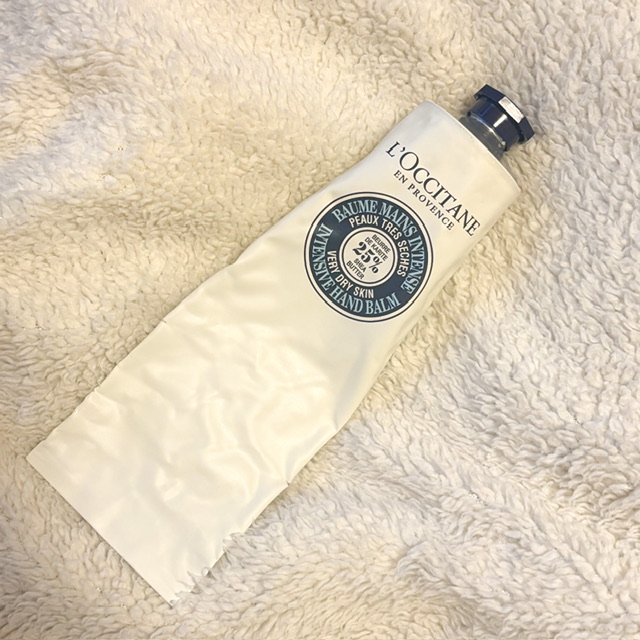 化粧水とセットで使っているのはロクシタンのシア ハンドバームマスク。