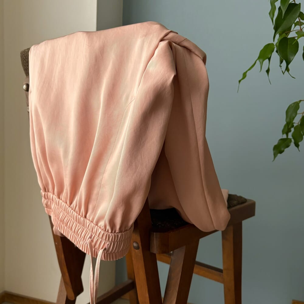 それは、光沢のあるサテン素材で、明るすぎないベージュピンクのとろみパンツ。