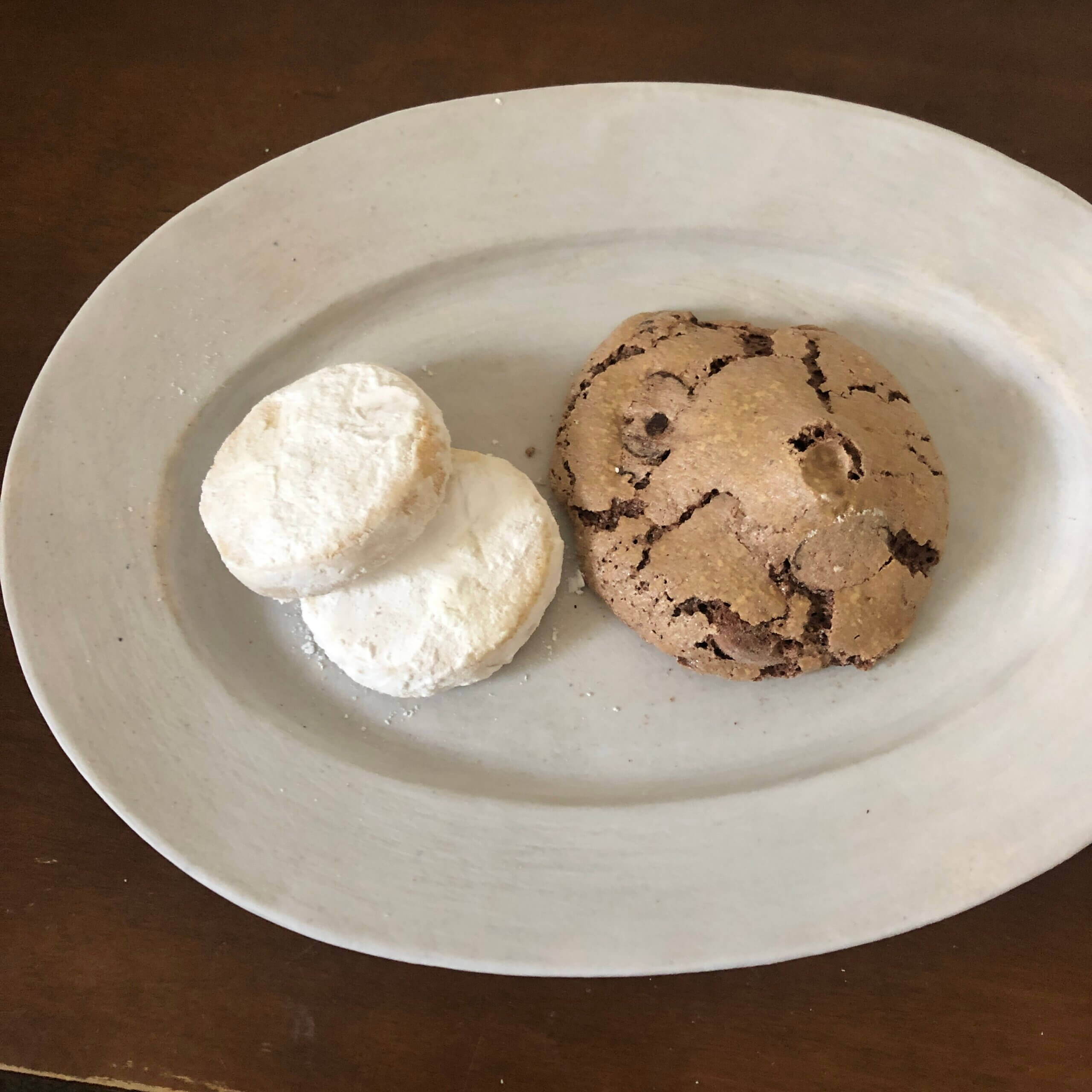 ピンクやベージュも混じったようなやわらかい白はお菓子を載せることが多いです。