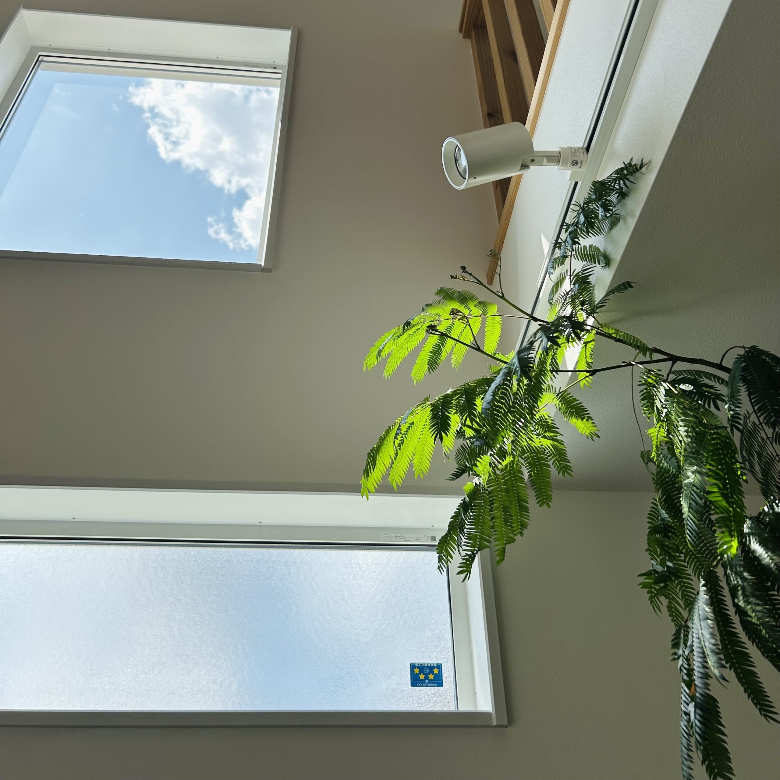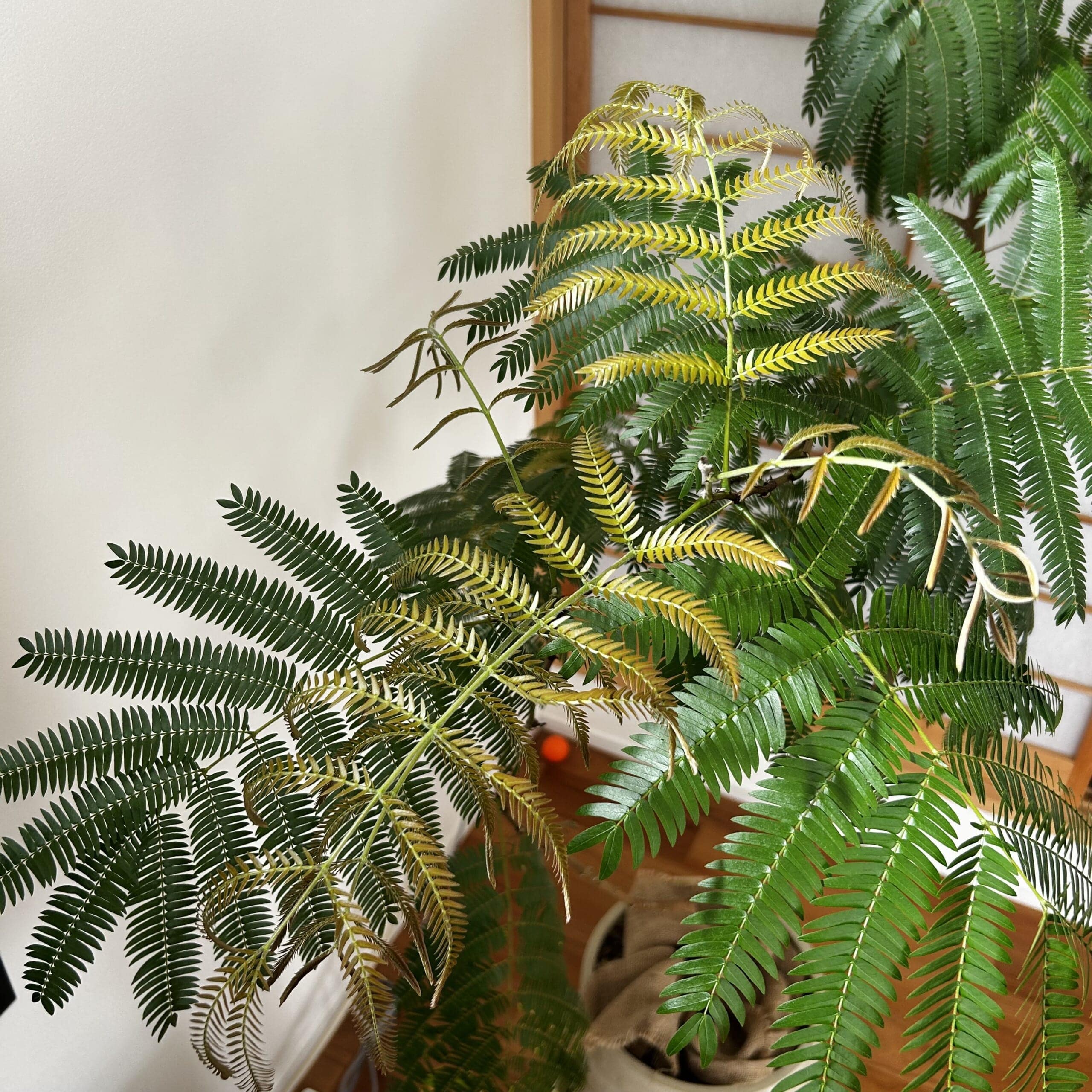 まだ都内で暮らしているときに、ふらっと観葉植物を見に行って一目惚れしたエバーフレッシュ。その時は電車で持ち帰れるくらい小さかったのに、ここまで大きく成長しました。これでも剪定したのですが、太陽に向かってぐんぐん伸びていきます。