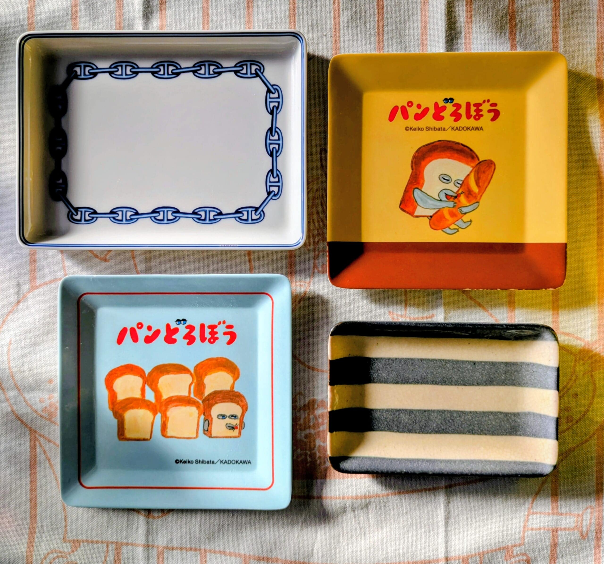 お祝いにいただいたエルメス、栗原はるみさんのボーダー柄、パンどろぼう柄があります