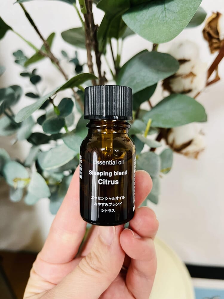 今回は夜の心身を落ち着かせる目的でのアロマ導入だったので、「エッセンシャルオイル おやすみブレンド シトラス」の香りをセレクトしました。