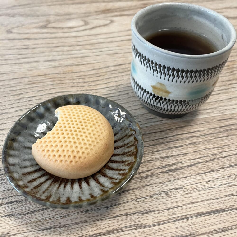写真を撮る前にうっかり食べ始めてしまい、食べかけですみません。熱~い京番茶とお饅頭の組み合わせ、最高~。