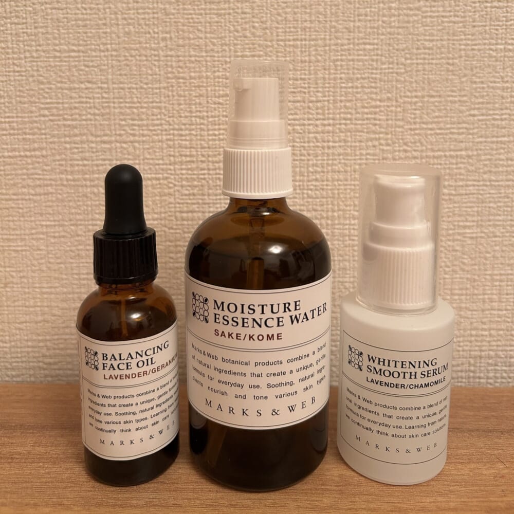 【MARKS & WEB】モイスチャーエッセンスウォーター(酒粕/コメ)、ハーバルオイルホホバ(ローズマリー)を購入しました♪