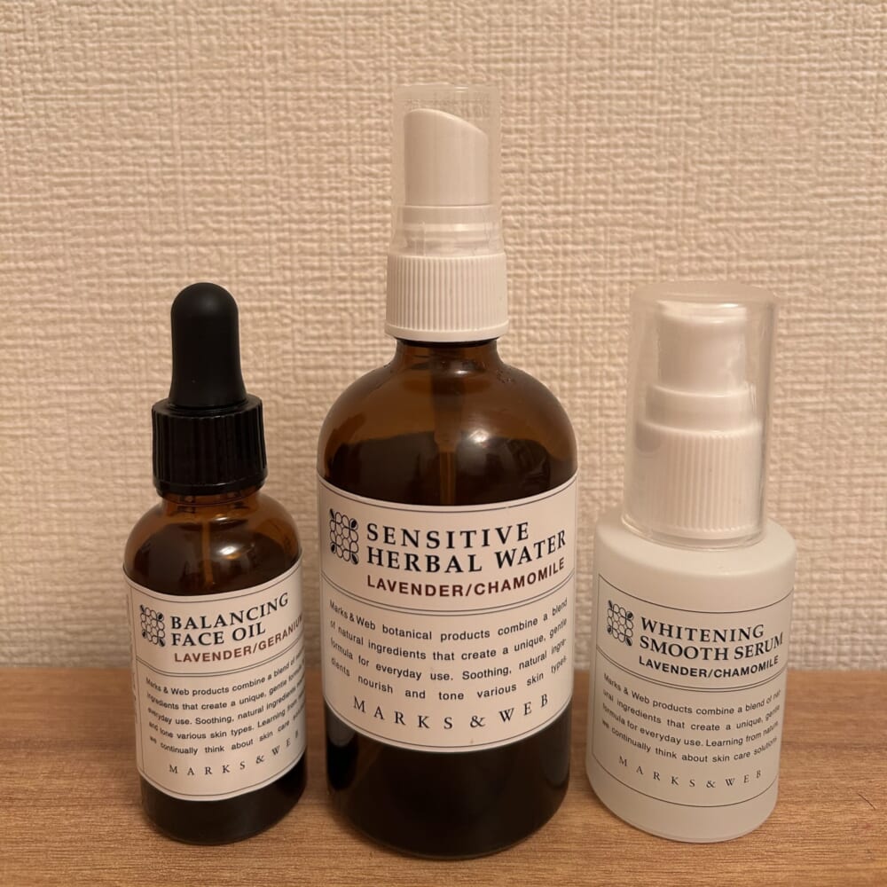 バランシングフェイスオイル→センシティブハーバルウォーター→薬用ホワイトニングスムースセラム