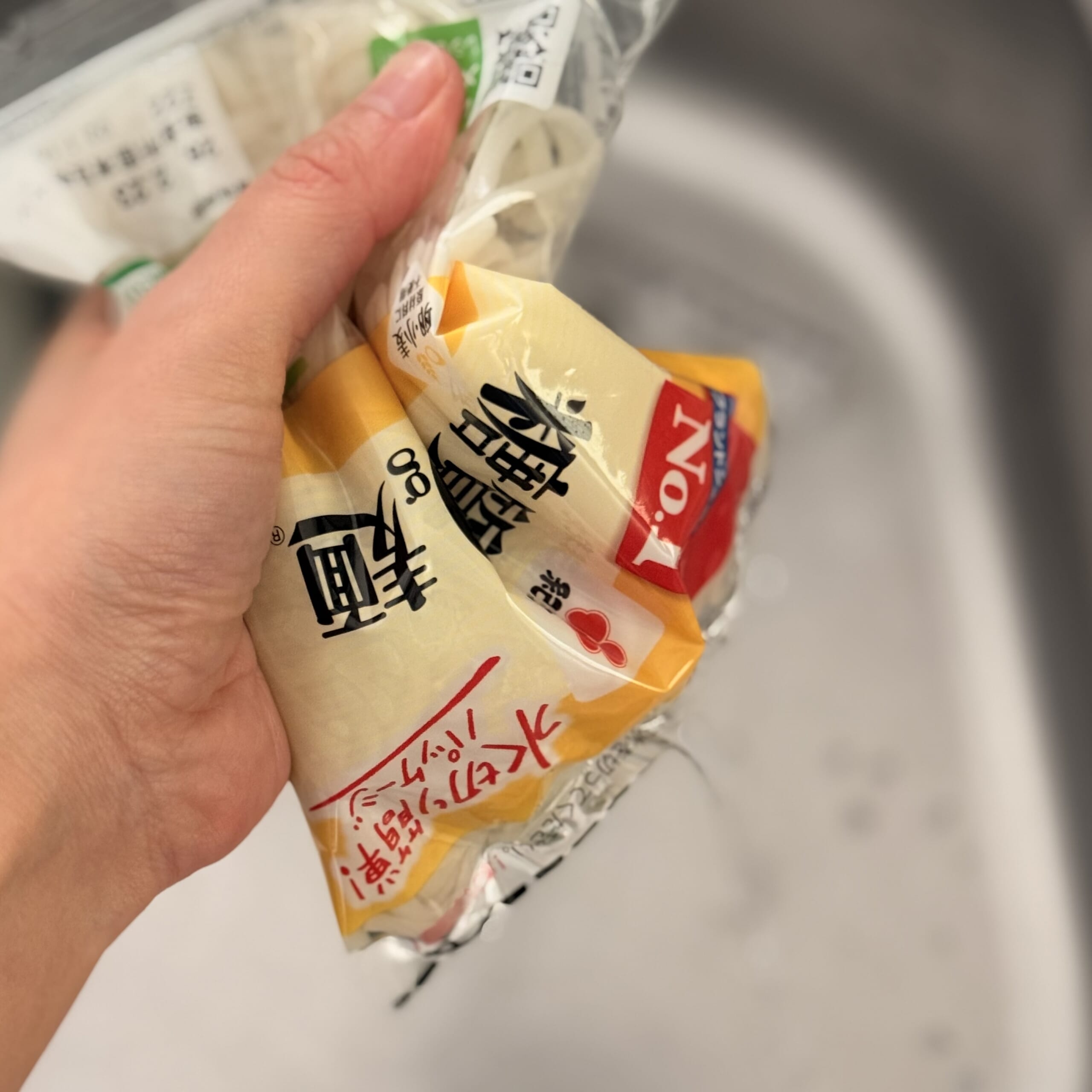 このパッケージは袋のまま水切りが出来るのでとても便利。