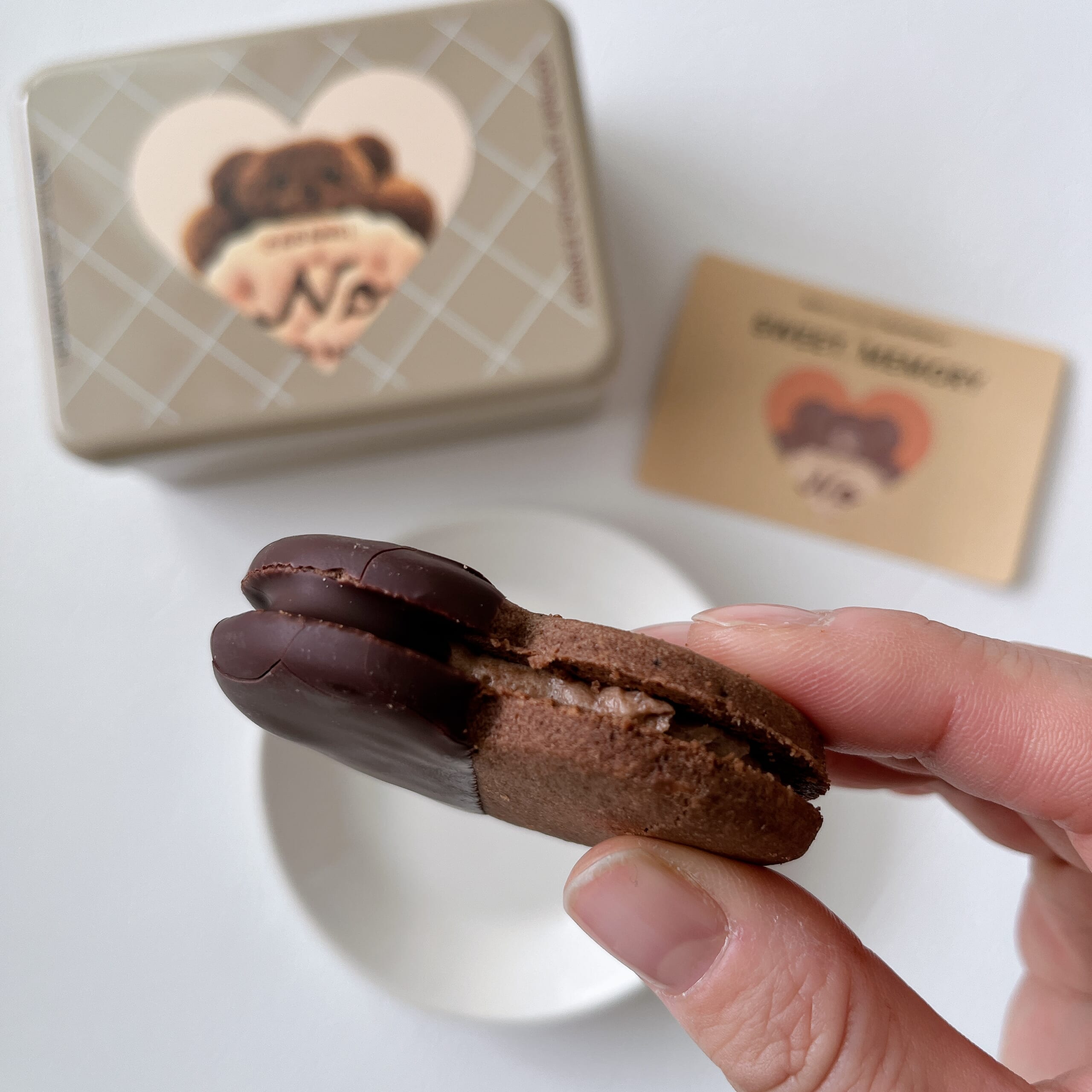 大好きなノーレーズンサンドイッチのサブレにチョコがかかっているなんて、おいしくないわけがないですよね。