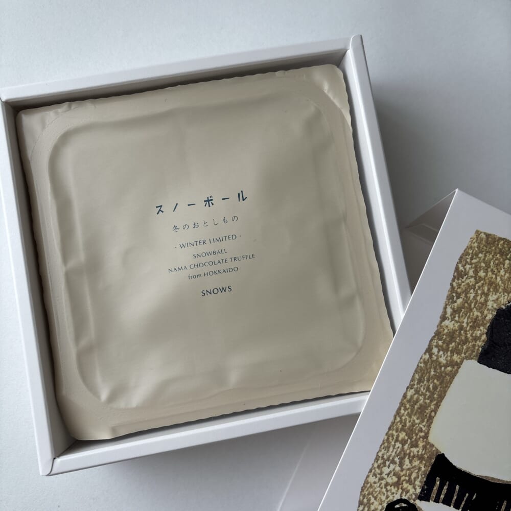 生チョコレートを挟んだスノーサンドが有名なんだけど、今回はスノーボールとスノーチップスを入手。今回はスノーボールをご紹介。
