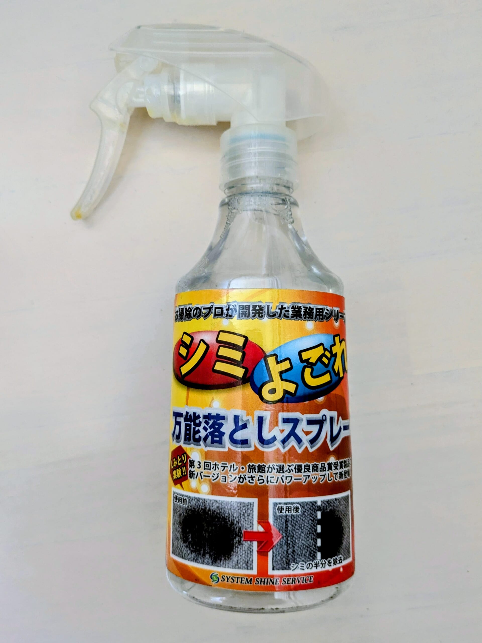 我が家で愛用している、絨毯や壁紙の汚れ落としのスプレーを、試しにスニーカーに吹きかけてみました